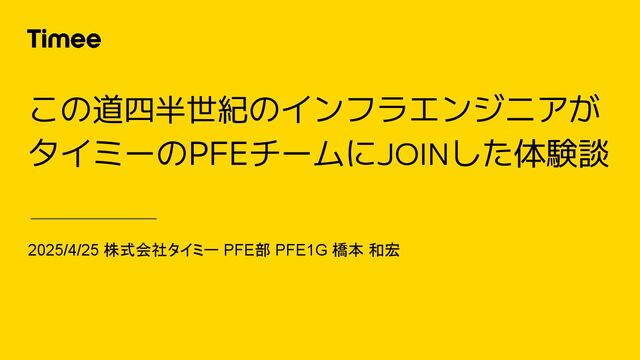 2025/4/25 株式会社タイミー PFE部 PFE1G 橋本 和宏 この道四半世紀のインフラエンジニアが タイミーのPFEチームにJOINした体験談
