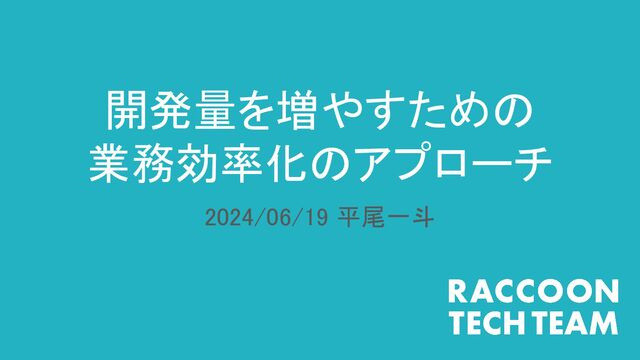 開発量を増やすための 業務効率化のアプローチ 2024/06/19 平尾一斗