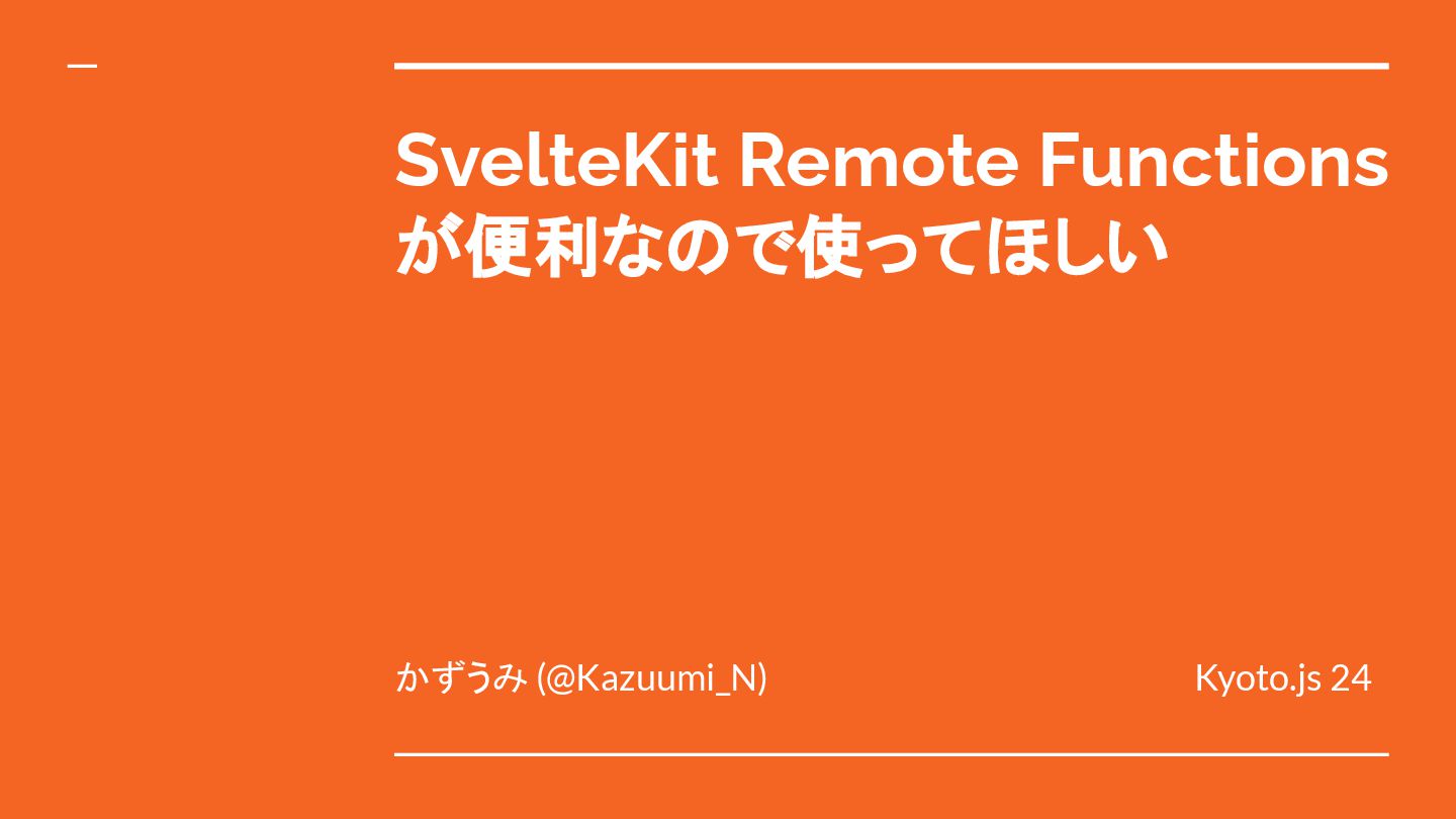SvelteKit Remote Functions が便利なので使ってほしい かずうみ (@Kazuumi_N) Kyoto.js 24