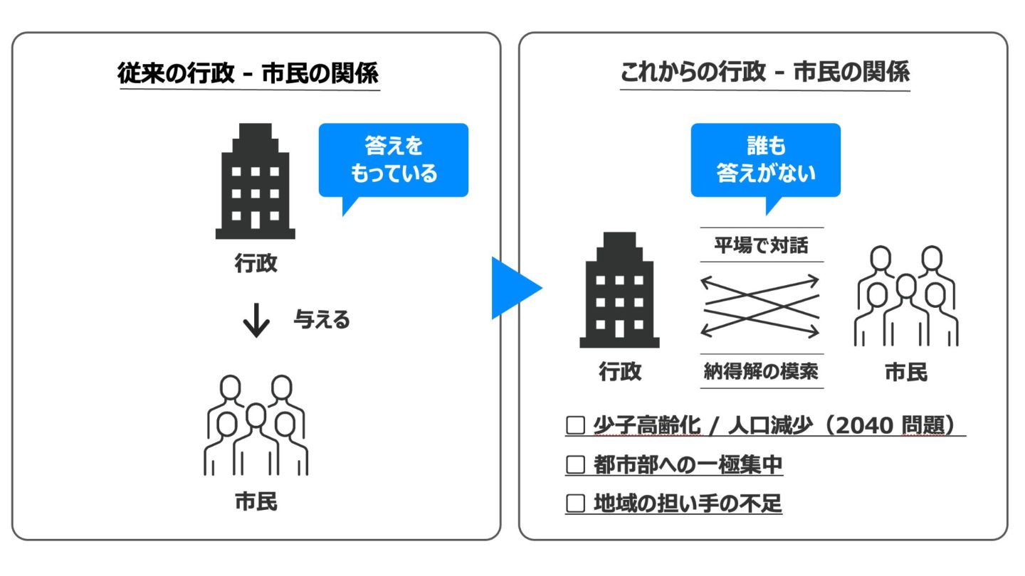長岡京市 ・「もしも市長になったら」「祭り」「総合 計画」など多様なテーマ ・対面とオンラインを併用したハイブ リッド型の対話実践と議論の蓄積 ・30〜40代の夜間や早朝の投稿 京都市 ・2050年に向けた京都基本構想策定 に関して意見を募集 →投稿数: