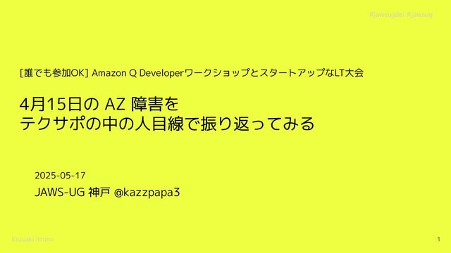 [誰でも参加OK] Amazon Q DeveloperワークショップとスタートアップなLT大会( https://jawsugdei.connpass.com/event/352867/ )の LT 枠でお話しした際のスライド資料になります。