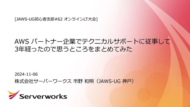 2024年11月6日にオンラインで配信された「JAWS-UG初心者支部#62 オンラインLT大会」でお話しした資料です。