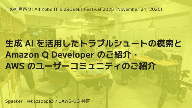 2025年11月21日(金) に神戸の産業振興センターで開催された「ITの神戸祭り! All Kobe IT Biz&Geeks Festival 2025」の 第2部 Tech Deep Diveセッション(技術枠)で登壇させていただきました。