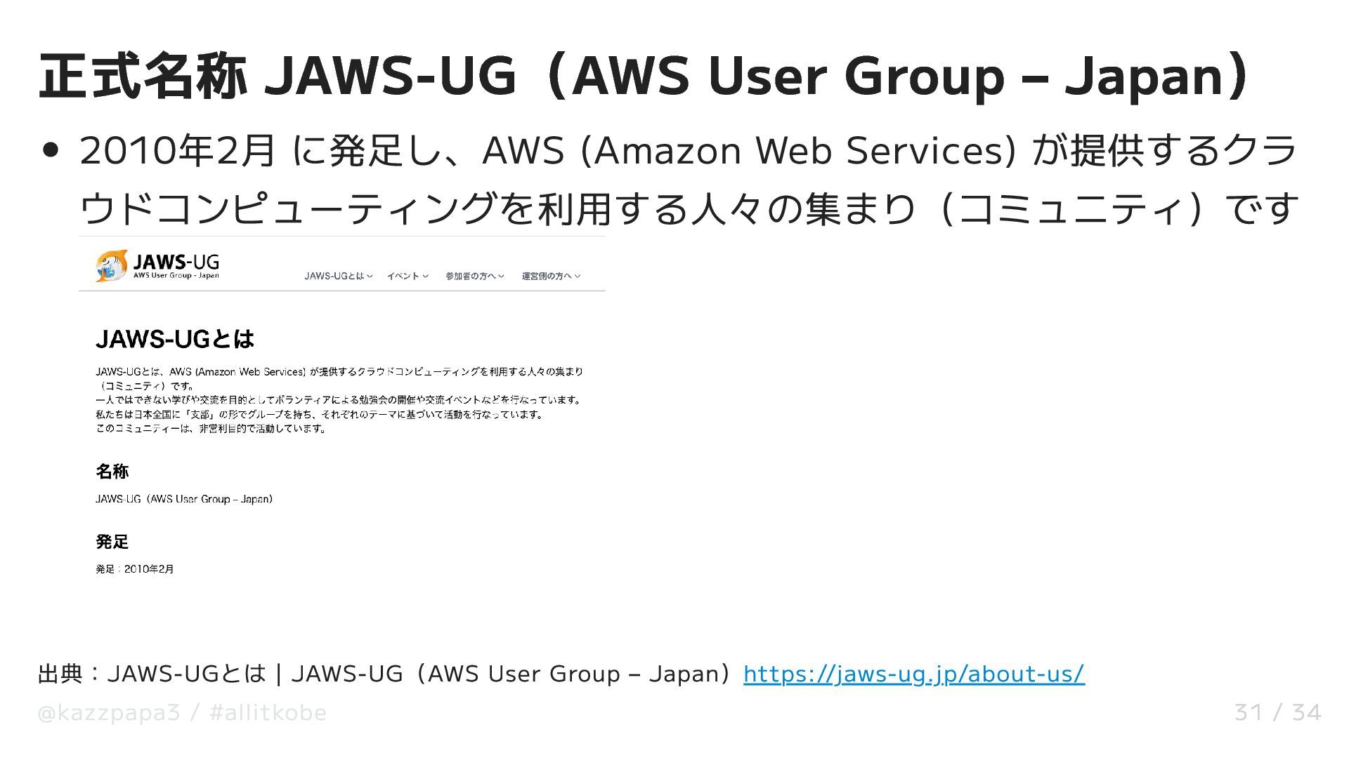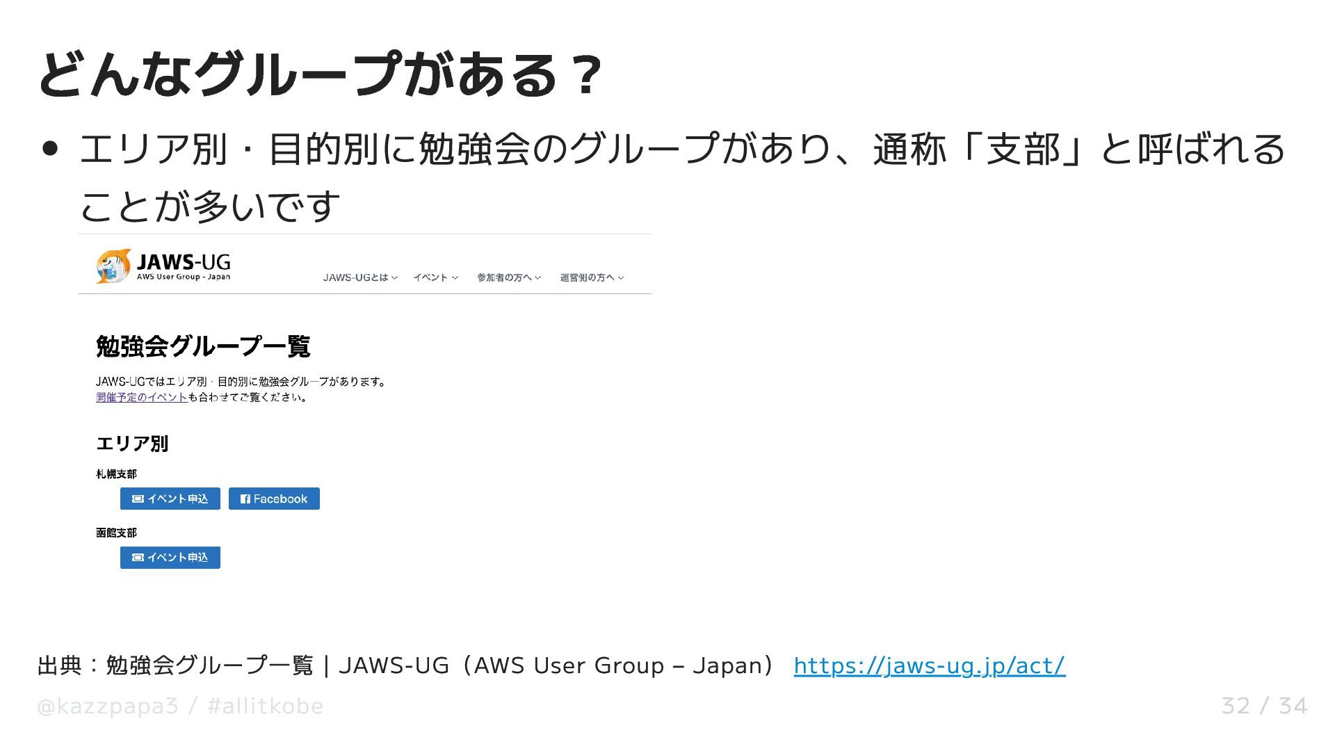 JAWS-UG や JAWS-UG 神戸支部の紹介もさせていただき、サメのアイコンで怖がられるけど怖くないよ、ともお伝えしています。