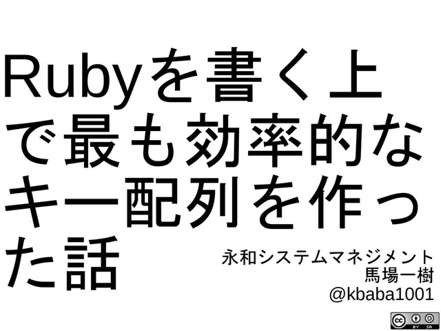 Rubyを書く上 で最も効率的な キー配列を作っ た話 永和システムマネジメント 馬場一樹 @kbaba1001