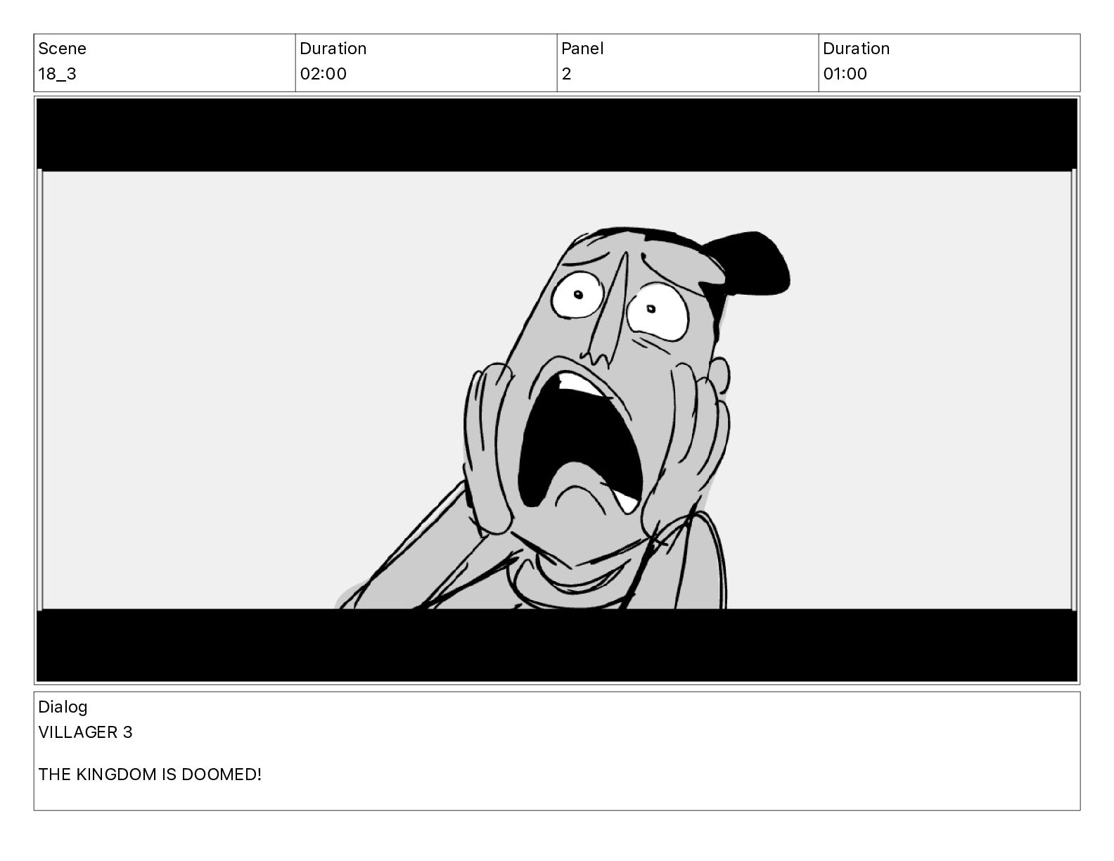 Scene 1 Duration 02 10 Panel 2 Duration 00 20