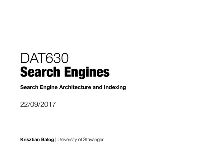 components, the interfaces provided by those components, and the relationships between them - Describes a system at a particular level of abstraction - Architecture of a search engine determined by 2 requirements - Effectiveness (quality of results) - Efficiency (response time and throughput)