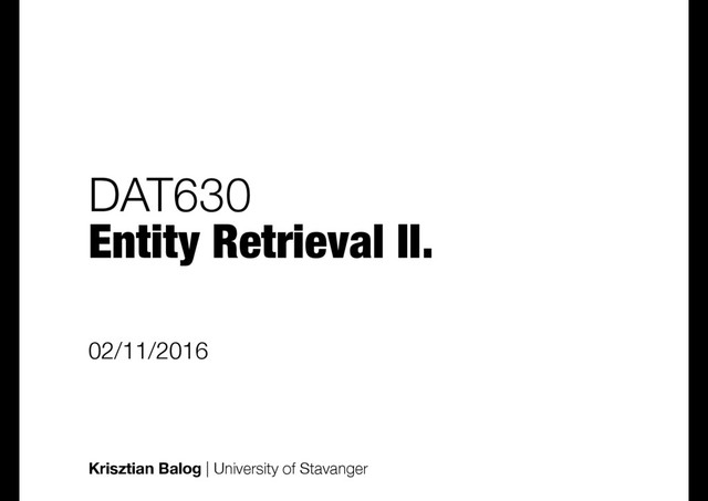 structures - How to capture, represent, and use structure? - It concerns all components of the retrieval process! Text-only representation info need entity matching Abc Abc Abc Text+structure representation info need entity matching Abc Abc Abc