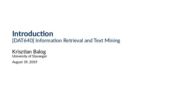 • Professor II at NTNU (0.2fte) • Visiting Staff Faculty Researcher at Google (0.2fte) • History ◦ Spent last year on a sabbatical at Google Research, London, UK ◦ Joined UiS in 2013 as Associate Professor, promoted to full professor in 2016 ◦ PhD from the University of Amsterdam (2008) • More: https://krisztianbalog.com/ 2 / 12