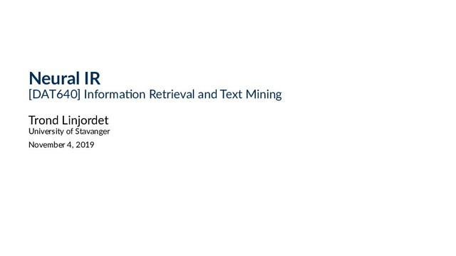 Information Retrieval, Microsoft Research, 2018. • P.S. Huang, X. He, J. Gao, L. Deng, A. Acero, and L. Heck. Learning Deep Structured Semantic Models for Web Search using Clickthrough Data . In Proc. of CIKM, 2013. • B. Mitra, F. Diaz, and N. Craswell. Learning to Match Using Local and Distributed Representations of Text for Web Search. In Proc. of WWW, 2017. • H. Zamani, B. Mitra, X. Song, N. Craswell, and S. Tiwary. Neural Ranking Models with Multiple Document Fields. In Proc. of WSDM, 2017. 38 / 38