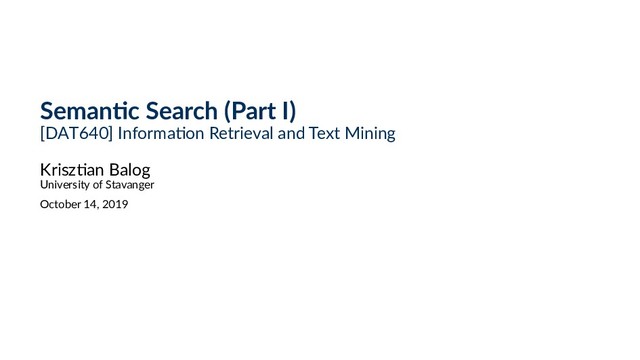 interface Document collection User Retrieval system Search engine Data Information need Figure: Illustration is taken from (Balog, 2018) [Fig. 1.3] 20 / 48