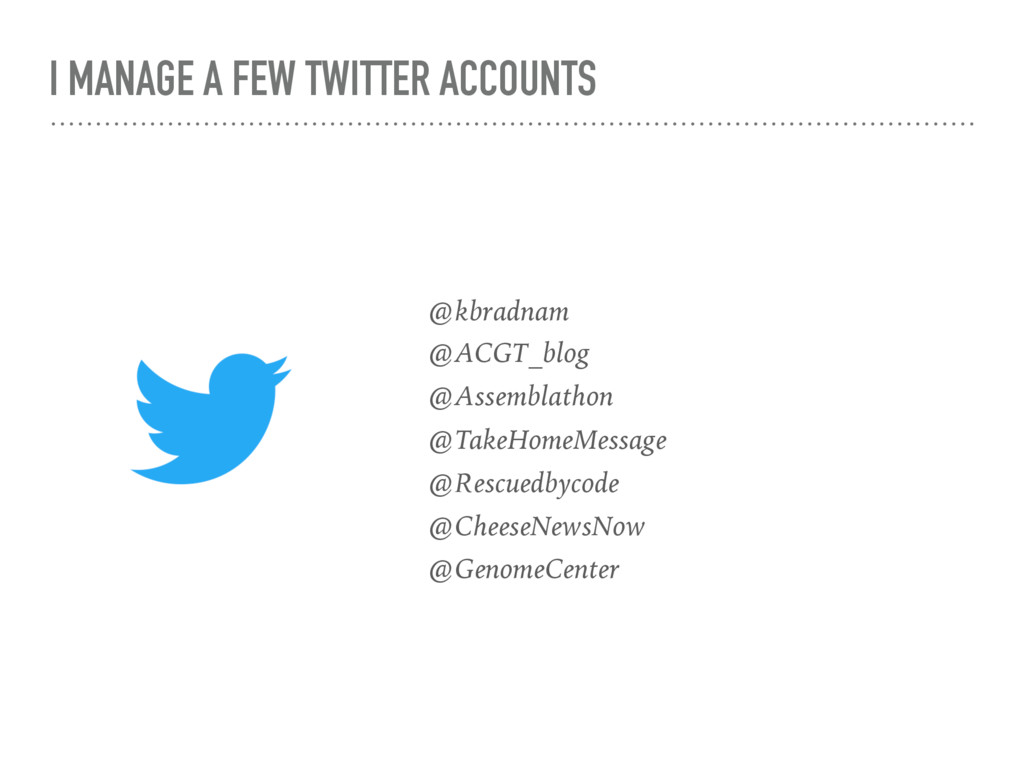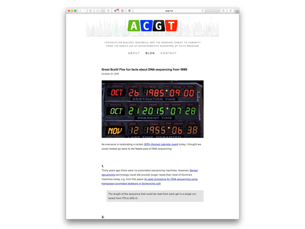 to at keithbradnam.com 2. And maybe at acgt.me 3. And of course on twitter at @kbradnam 4. Reminder, I am still around for a little while longer! 5. Sign up for an ORCID iD at orcid.org 6. Please stop using the old Genome Center logo!