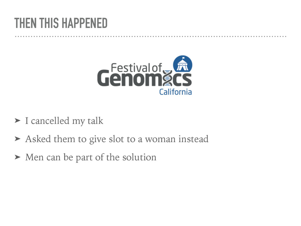 — in the fields of genomics and bioinformatics — should be aiming for at least a third of all speakers to be women. Ideally, we want to be doing better than this which is why I suggest this as an absolute minimum target.