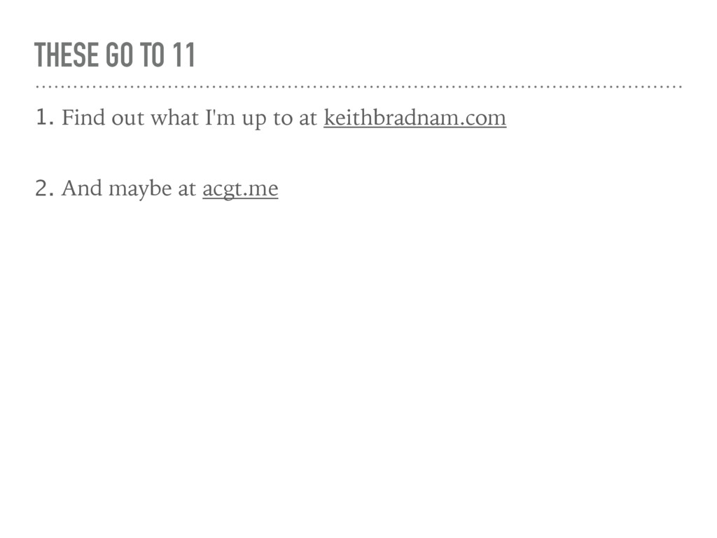 to at keithbradnam.com 2. And maybe at acgt.me 3. And of course on twitter at @kbradnam 4. Reminder, I am still around for a little while longer! 5. Sign up for an ORCID iD at orcid.org