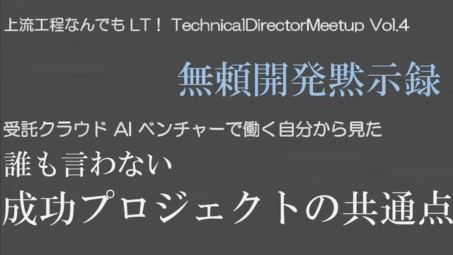 成功プロジェクトの共通点 無頼開発黙示録 誰も言わない 上流工程なんでも LT! TechnicalDirectorMeetup Vol.4 受託クラウド AI ベンチャーで働く自分から見た
