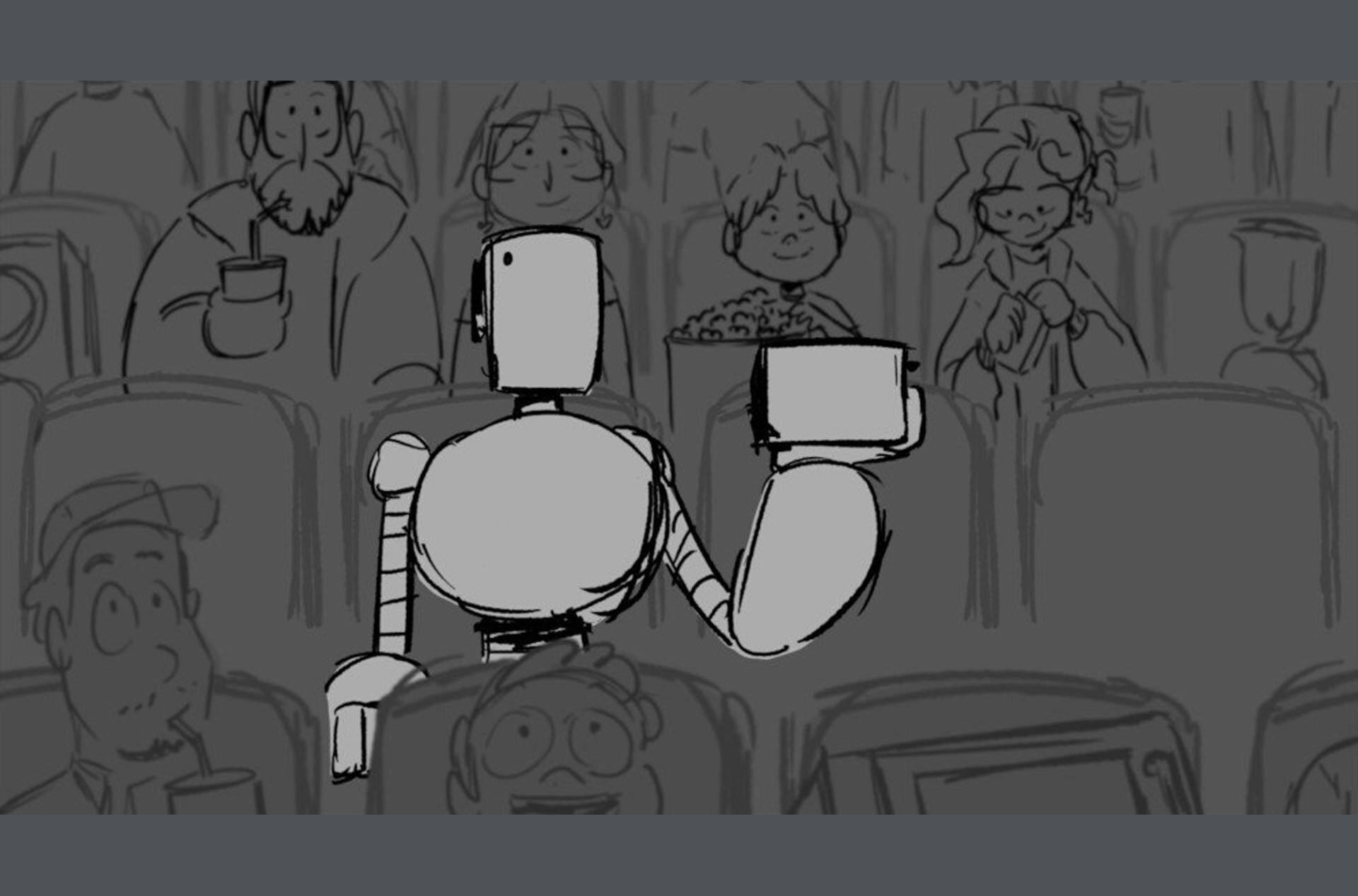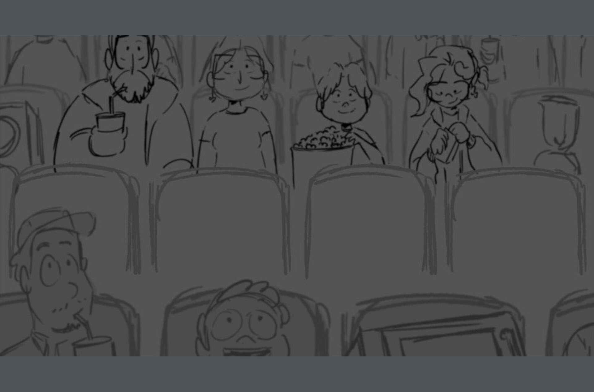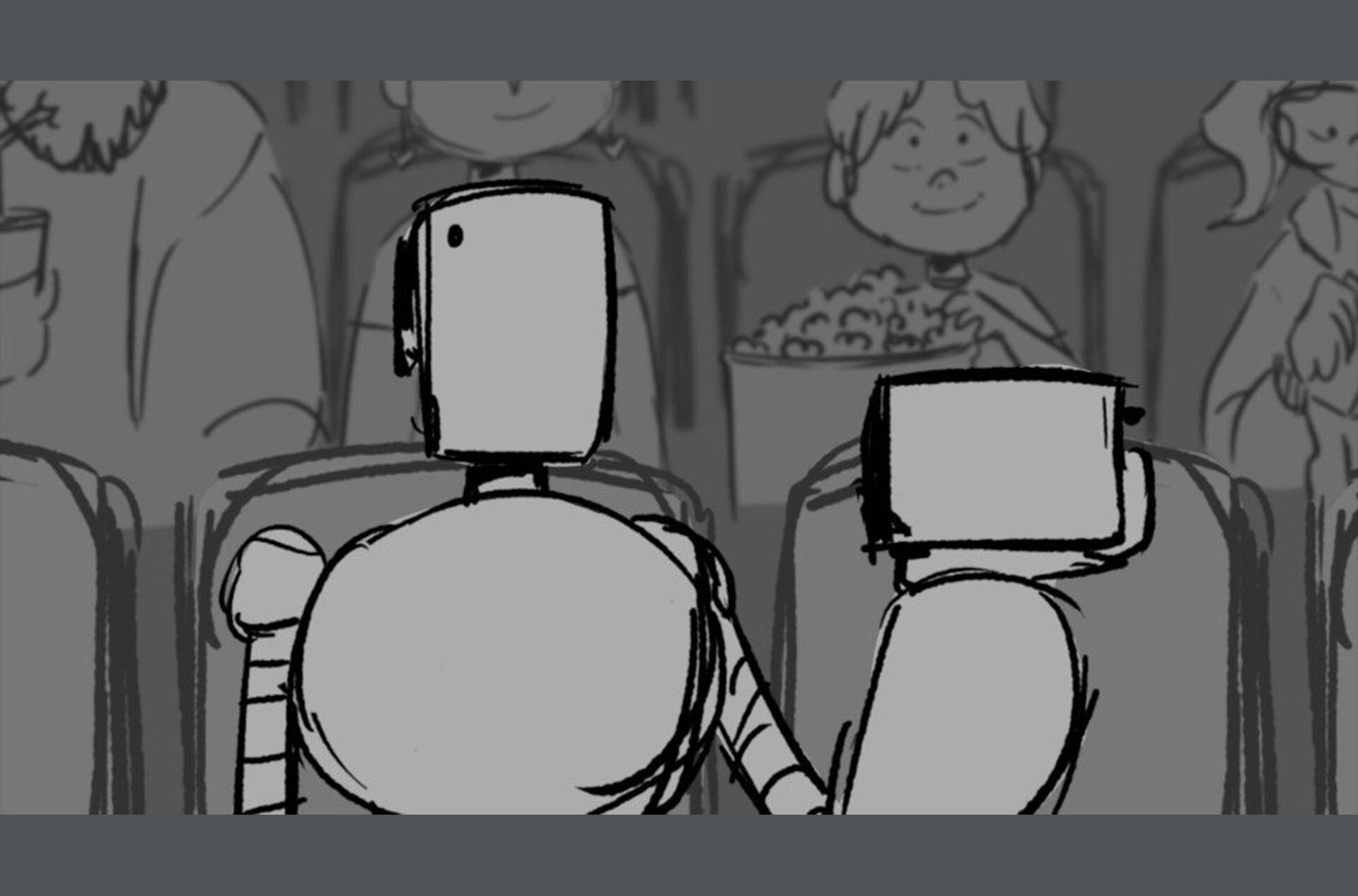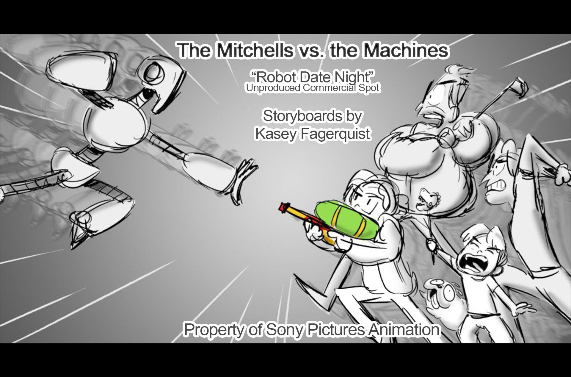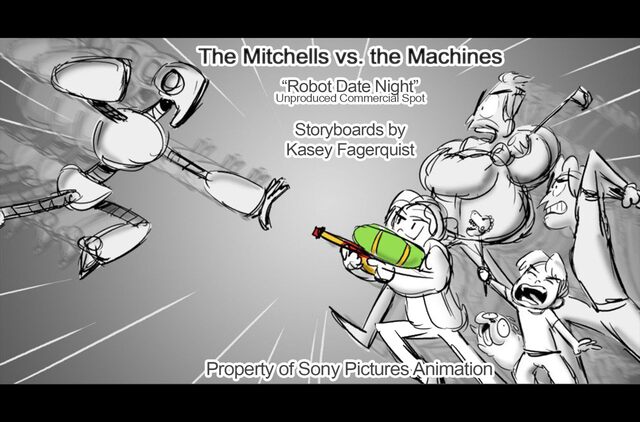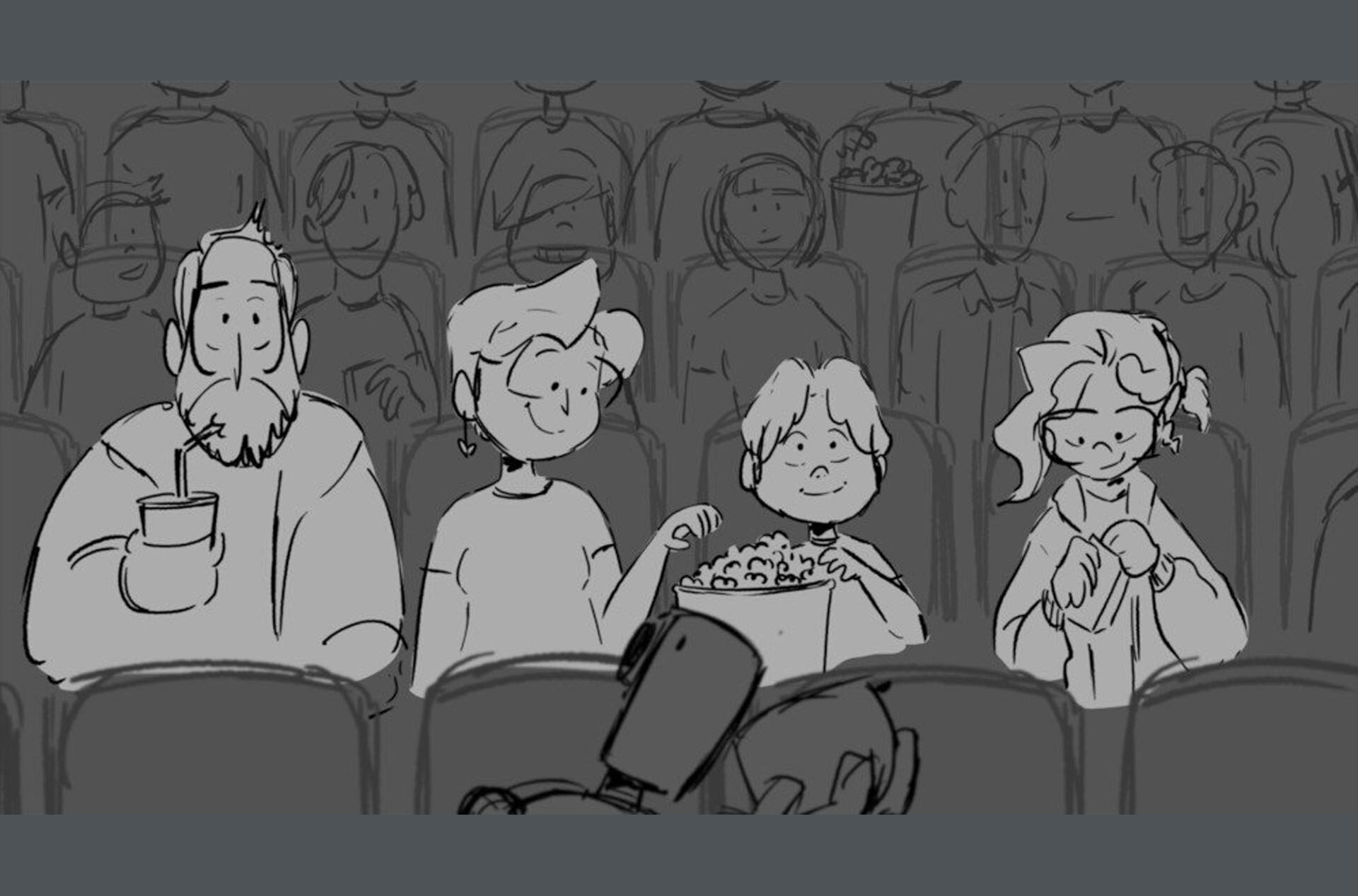 Storyboards by Kasey Fagerquist for an unproduced movie theater gift card commercial for The Mitchells vs. the Machines