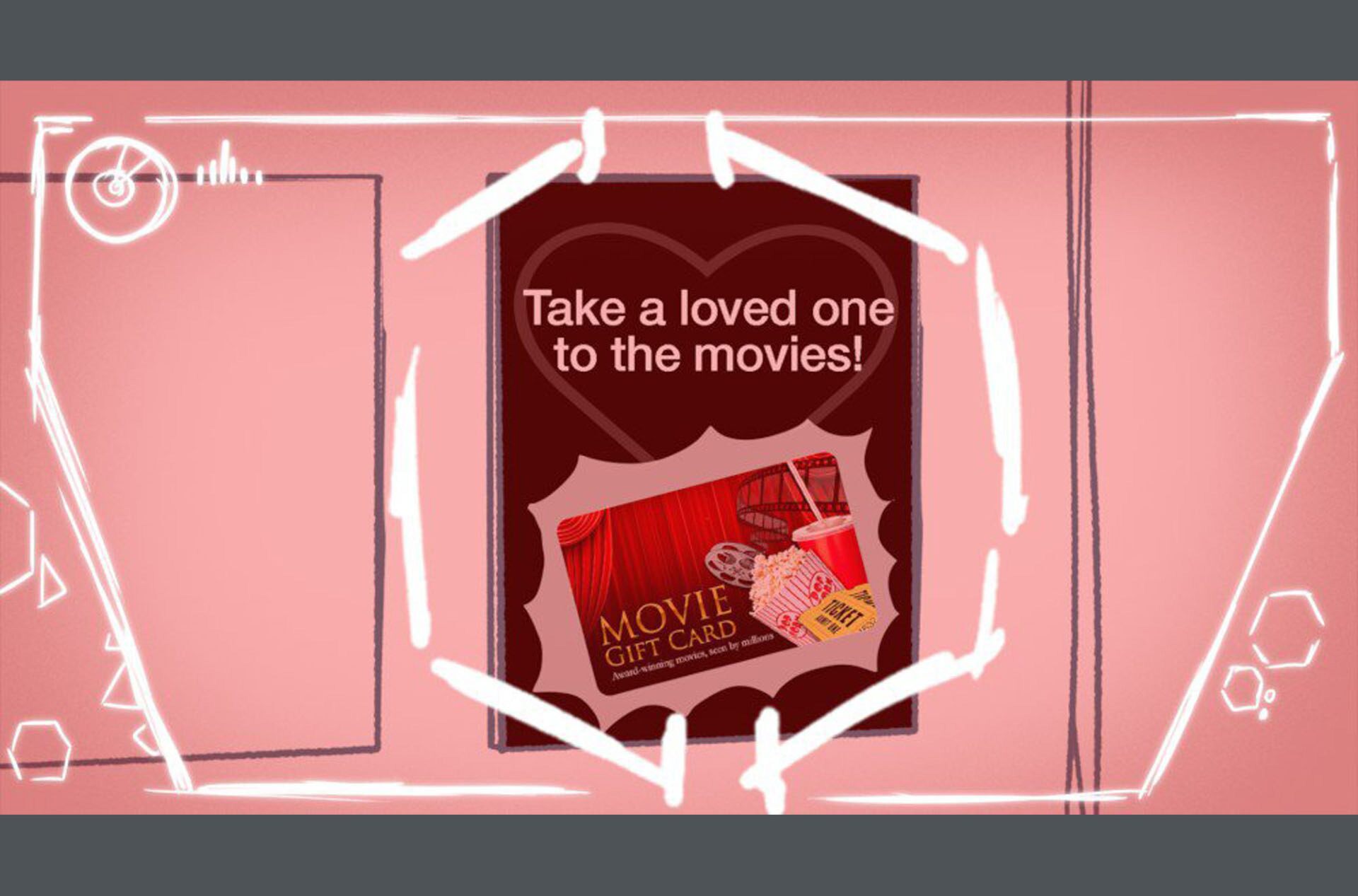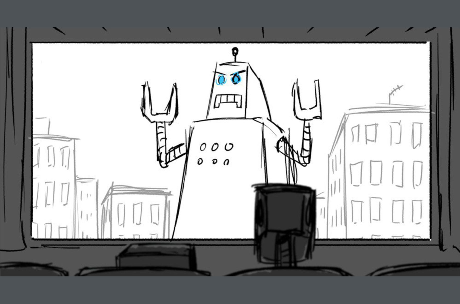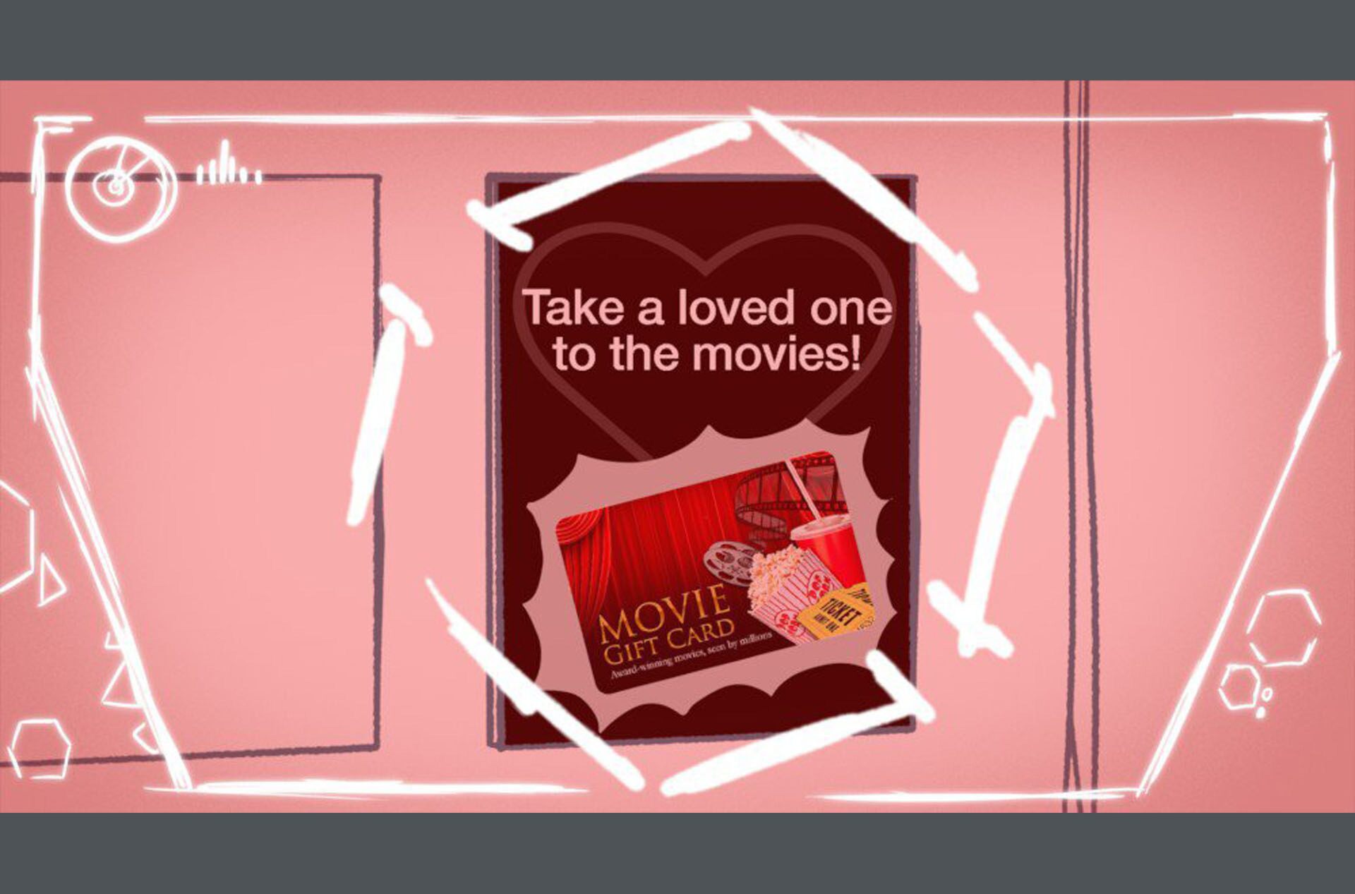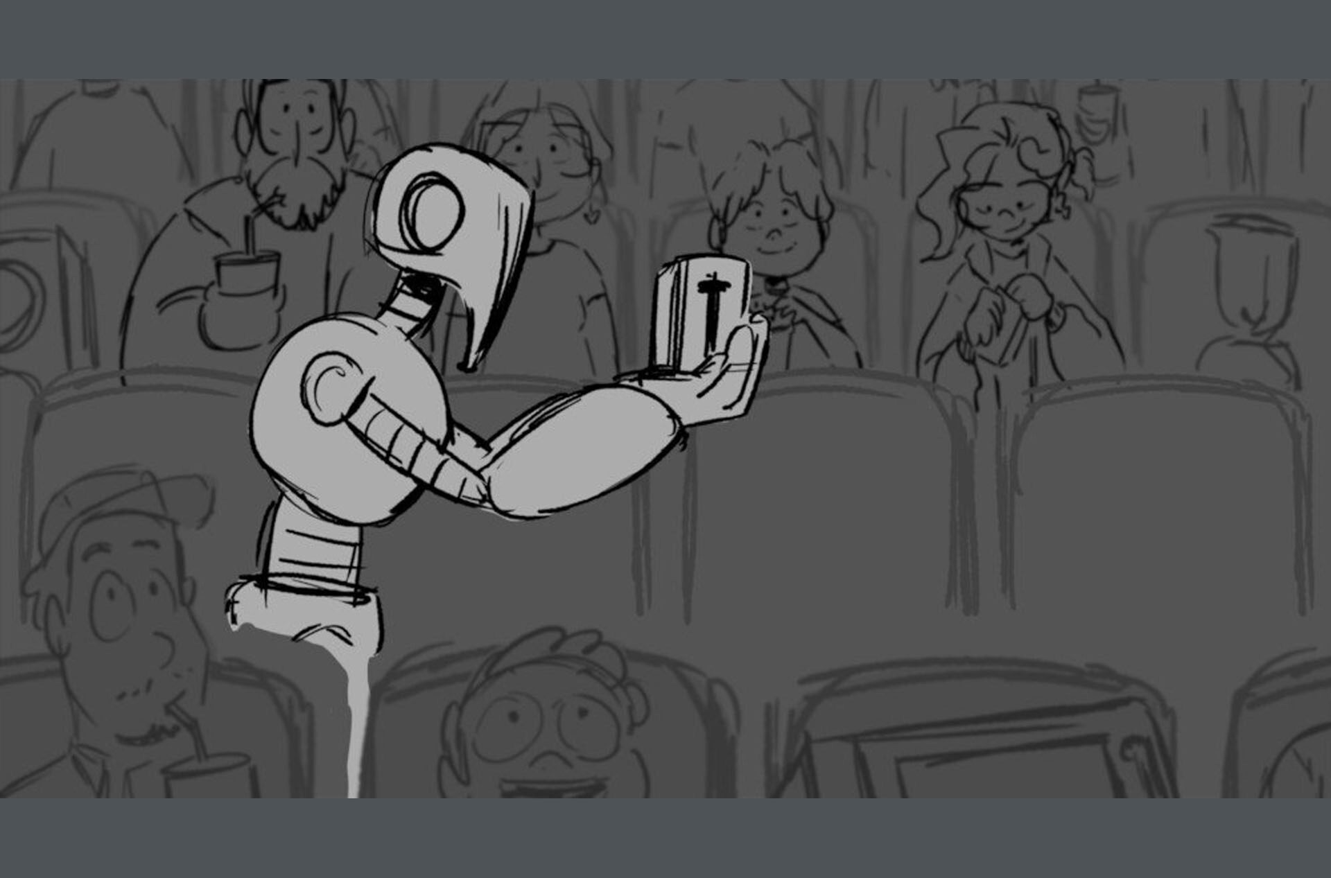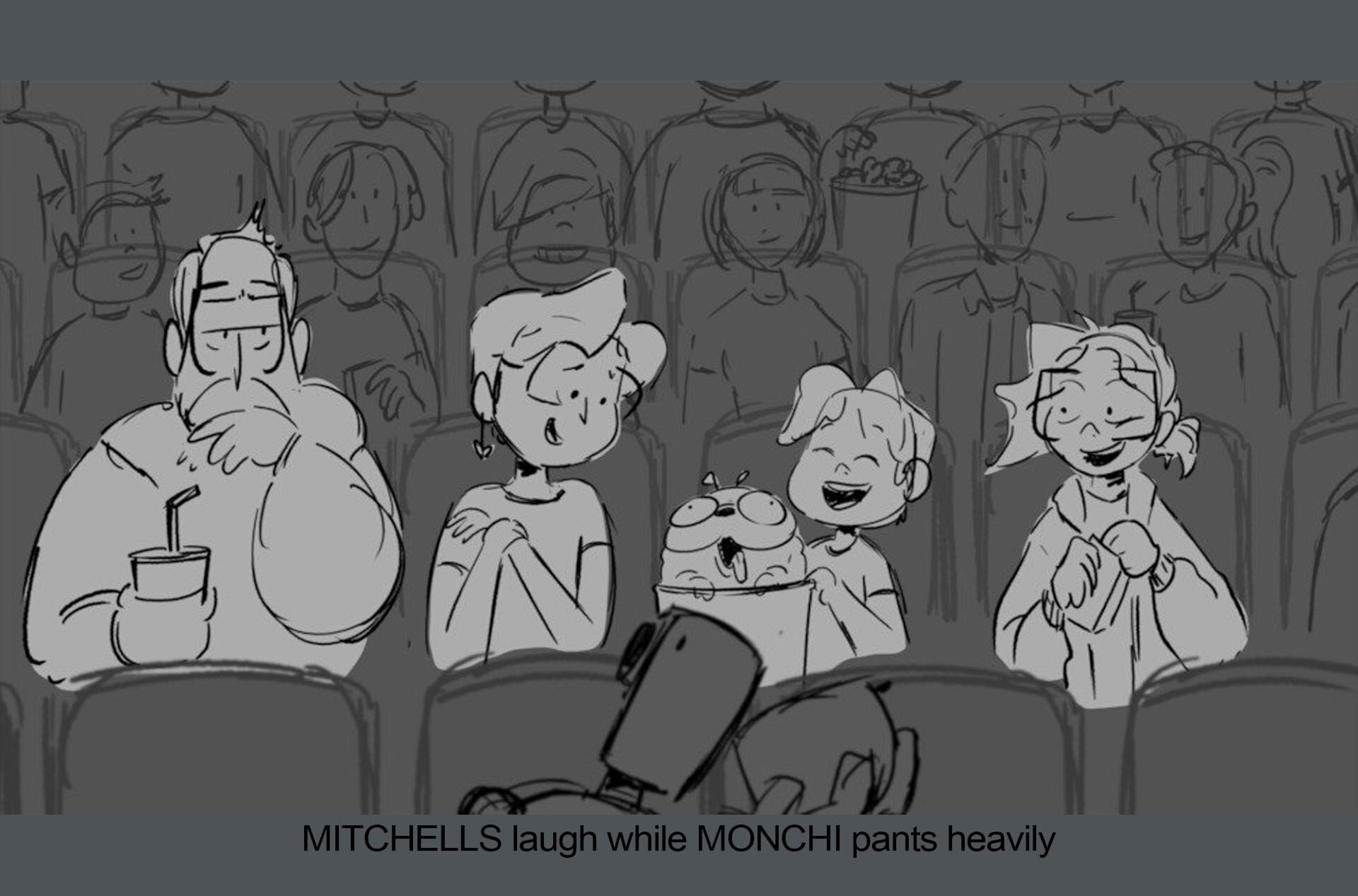 Storyboards by Kasey Fagerquist for an unproduced movie theater gift card commercial for The Mitchells vs. the Machines