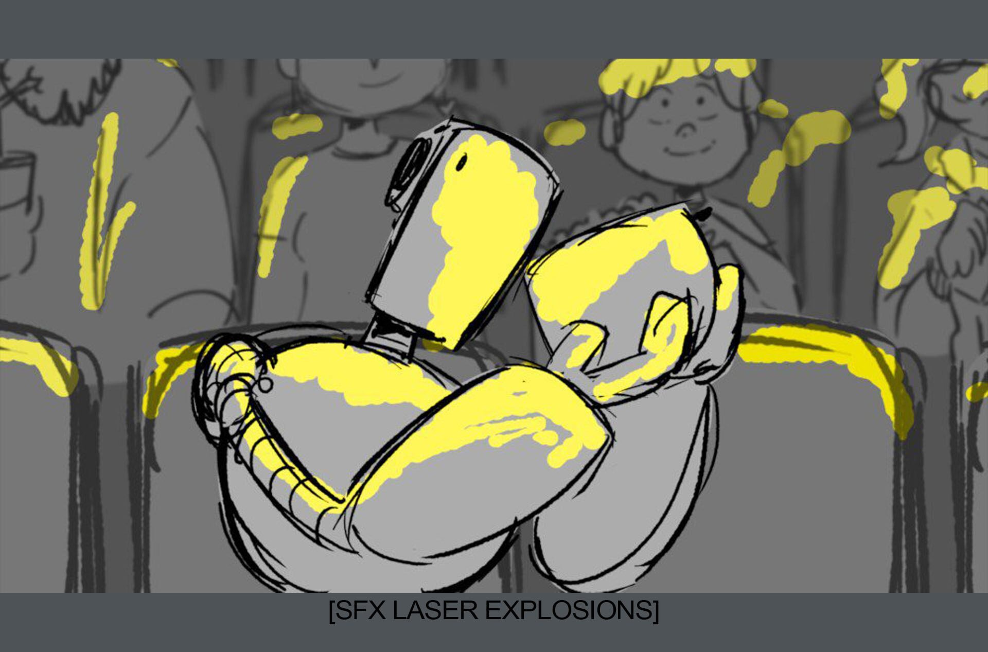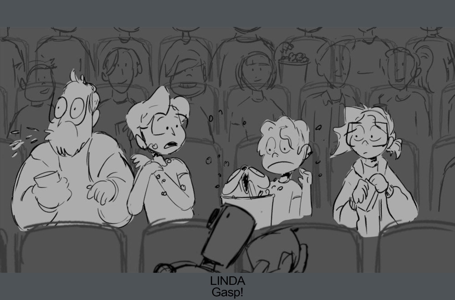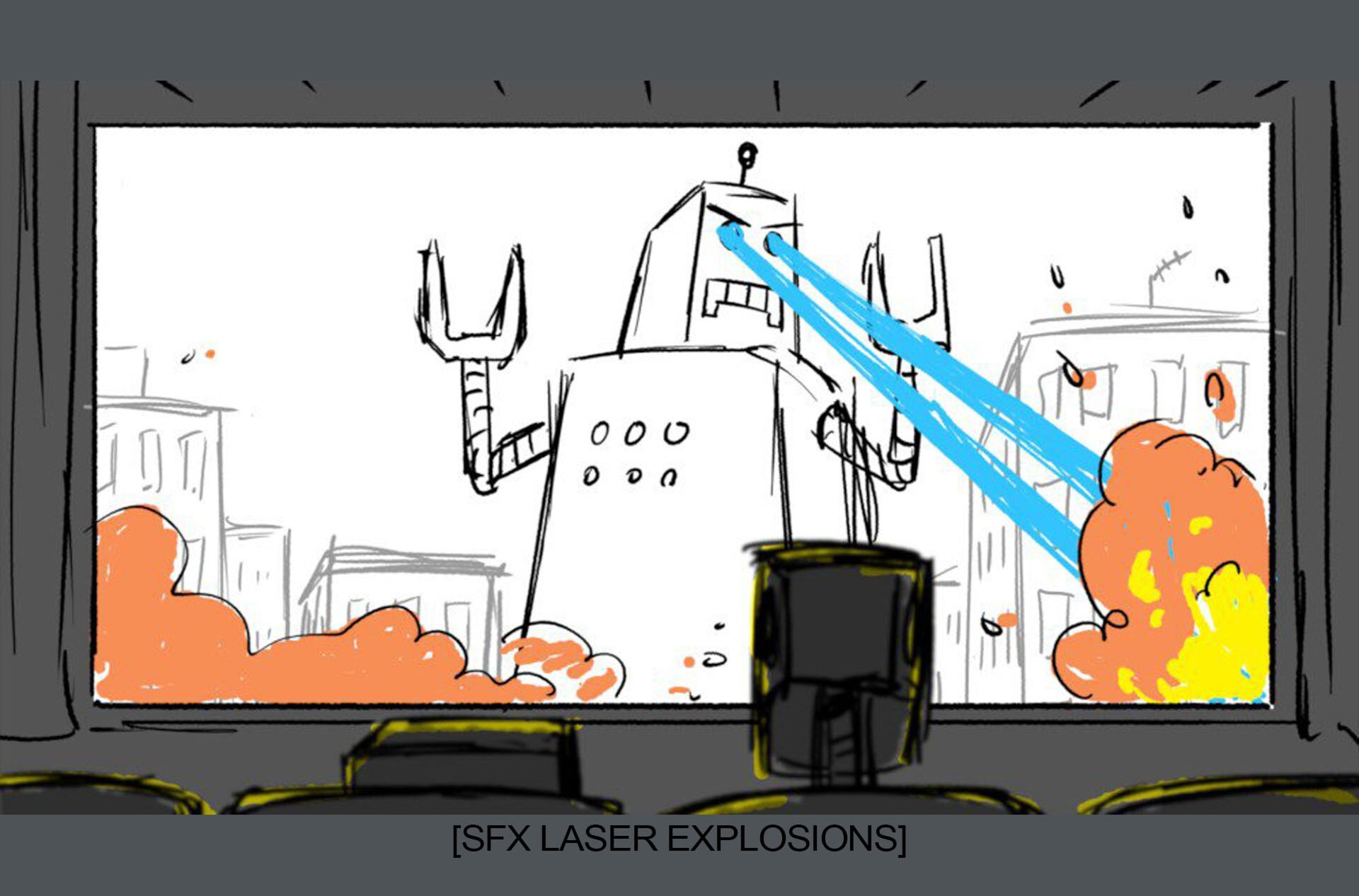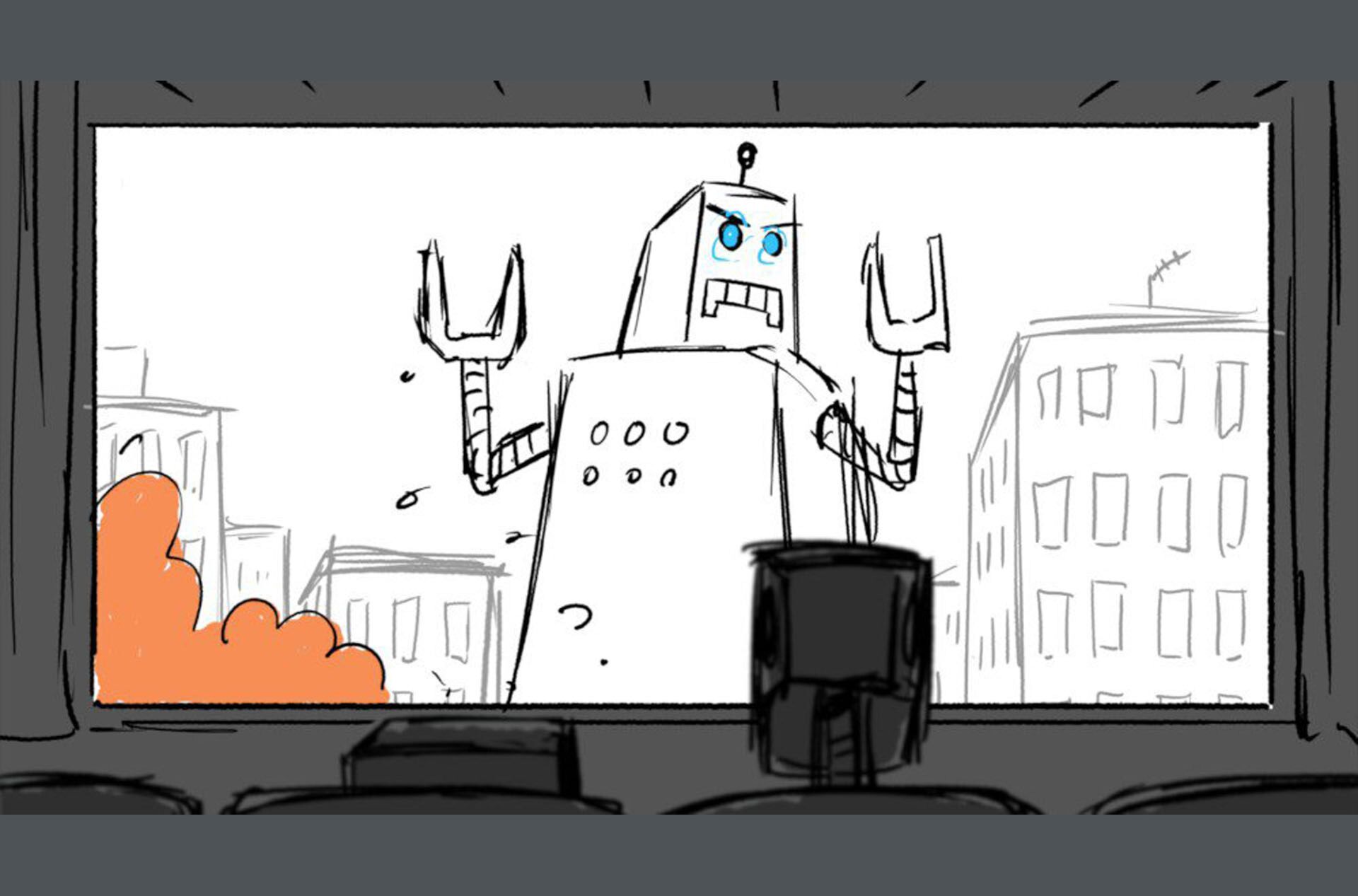 Storyboards by Kasey Fagerquist for an unproduced movie theater gift card commercial for The Mitchells vs. the Machines