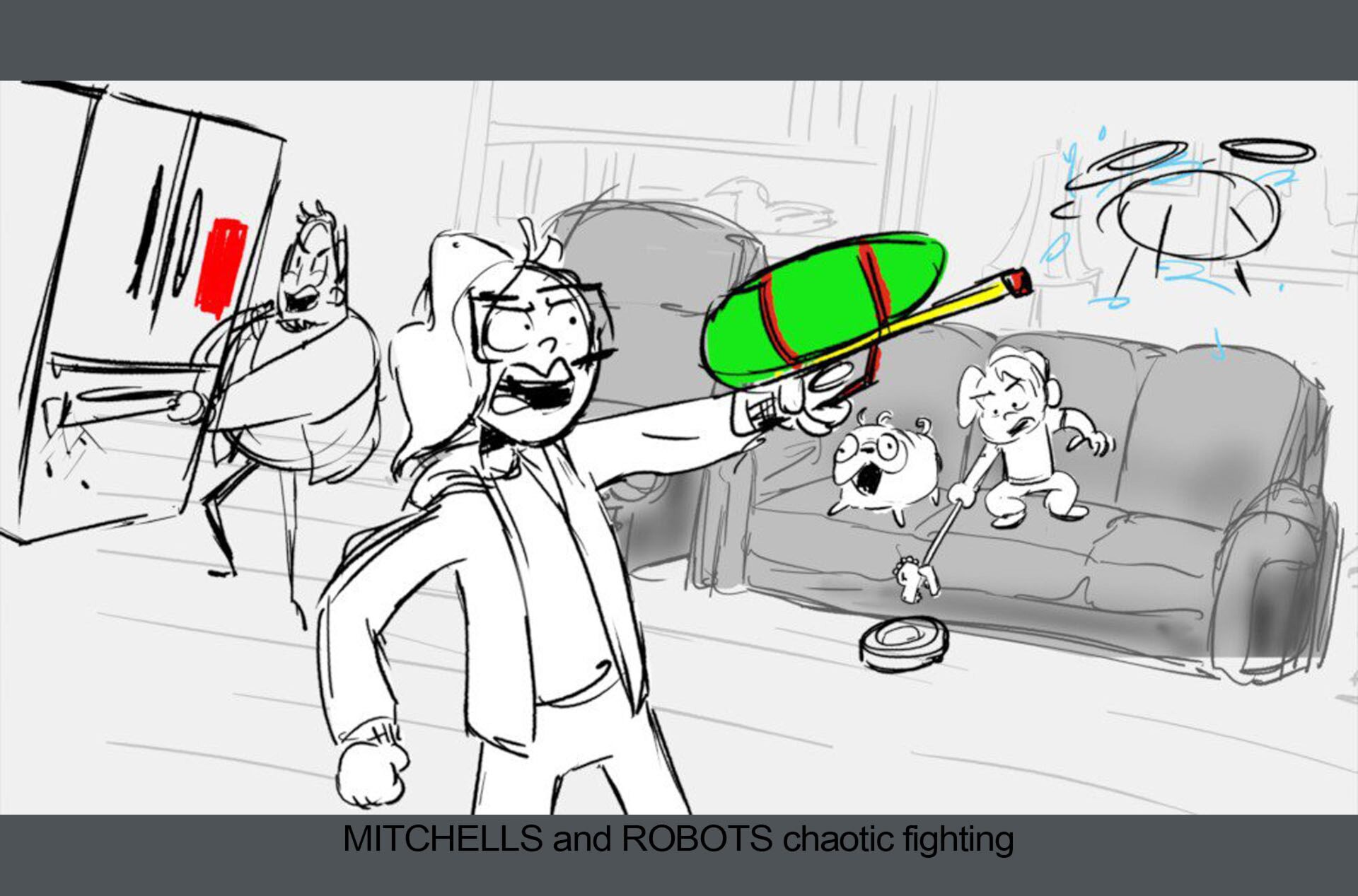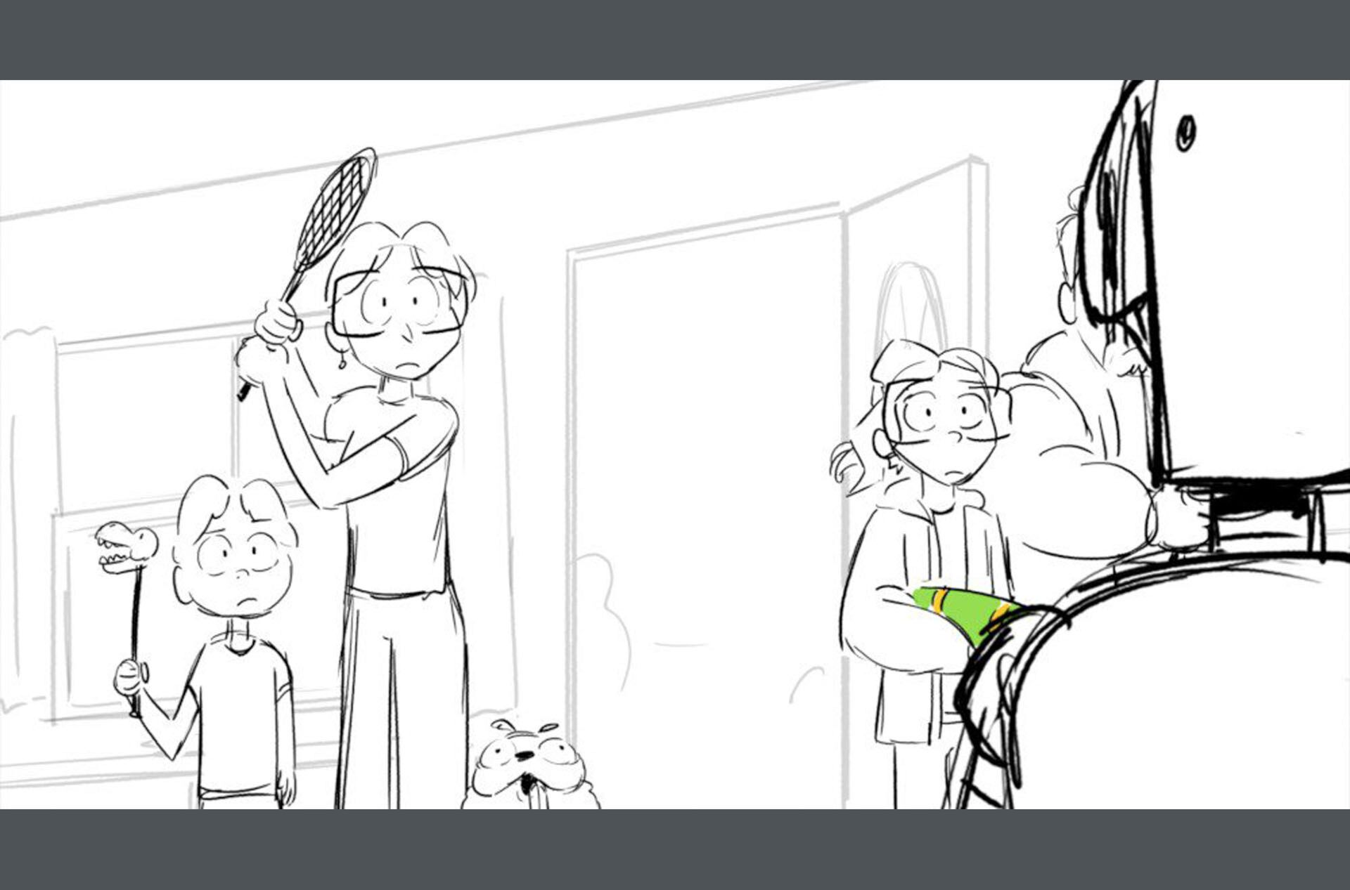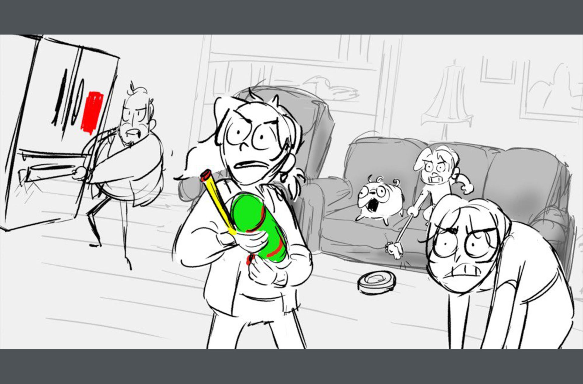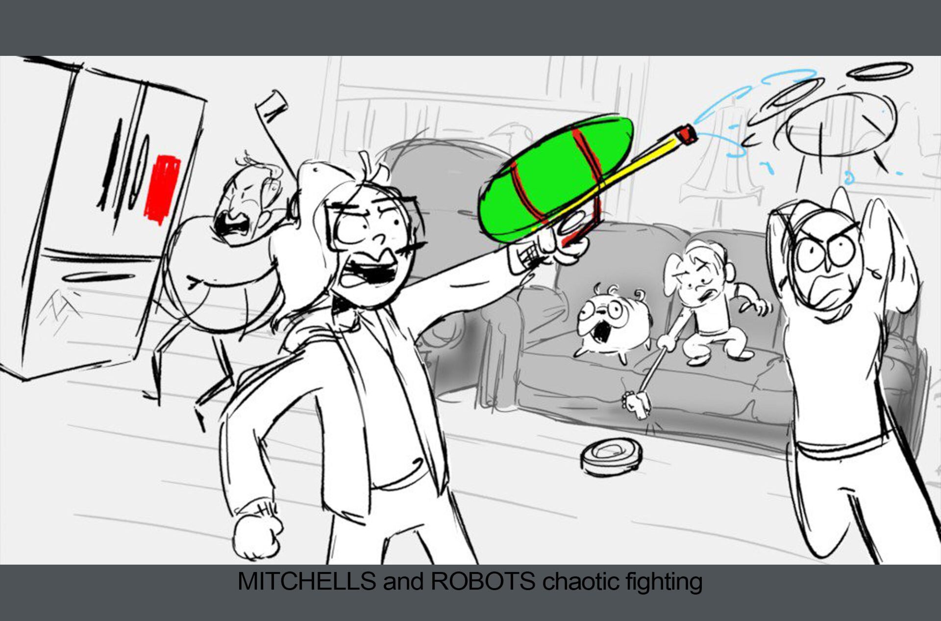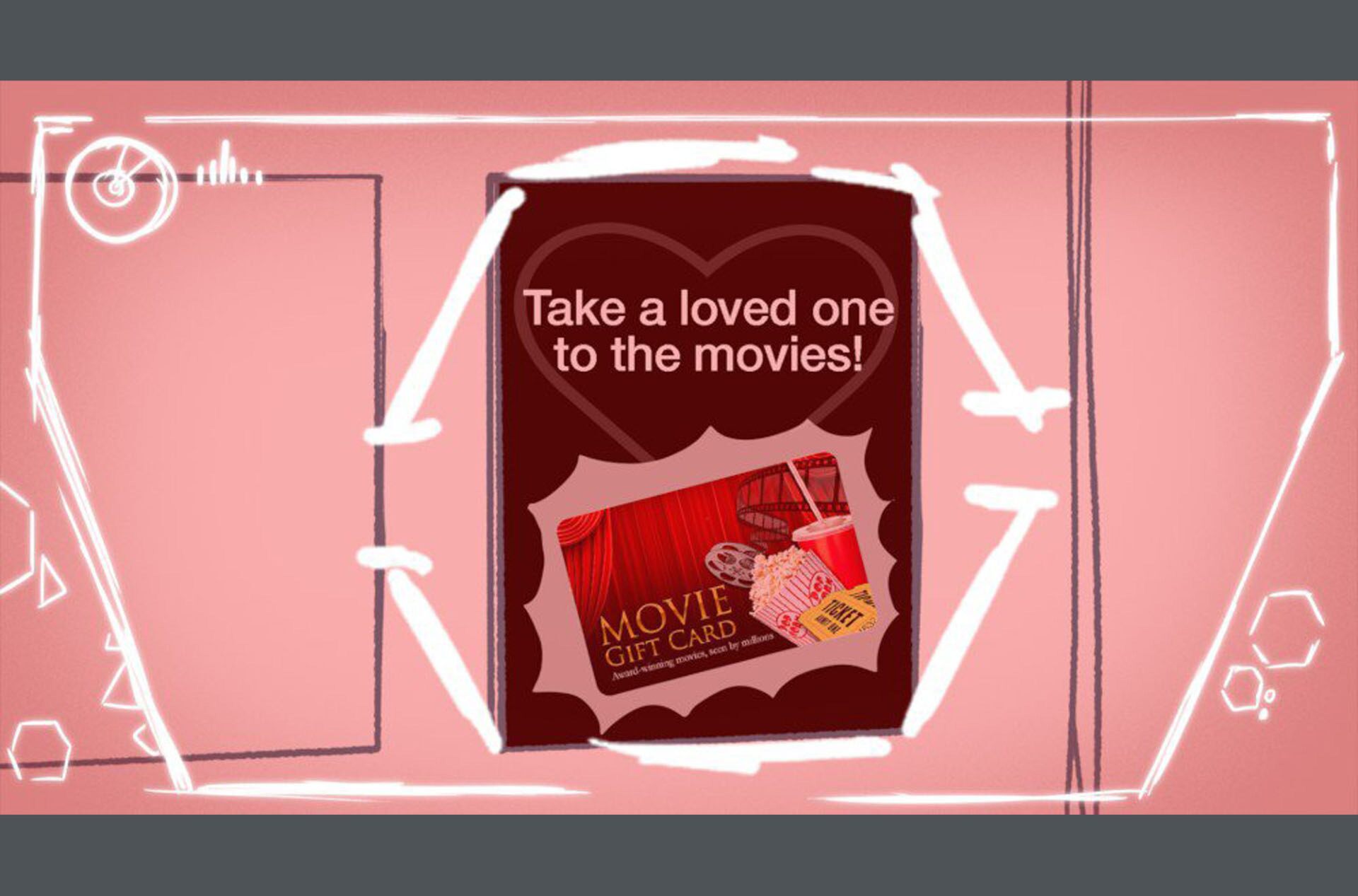 Storyboards by Kasey Fagerquist for an unproduced movie theater gift card commercial for The Mitchells vs. the Machines