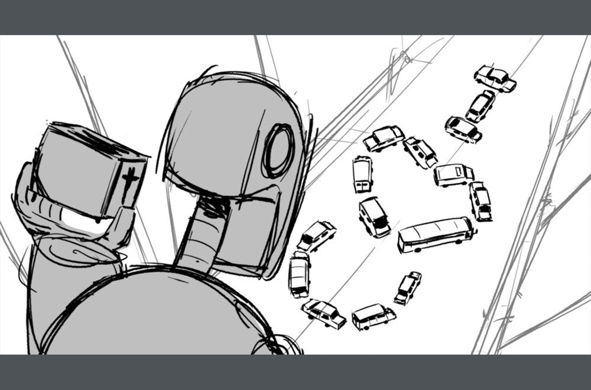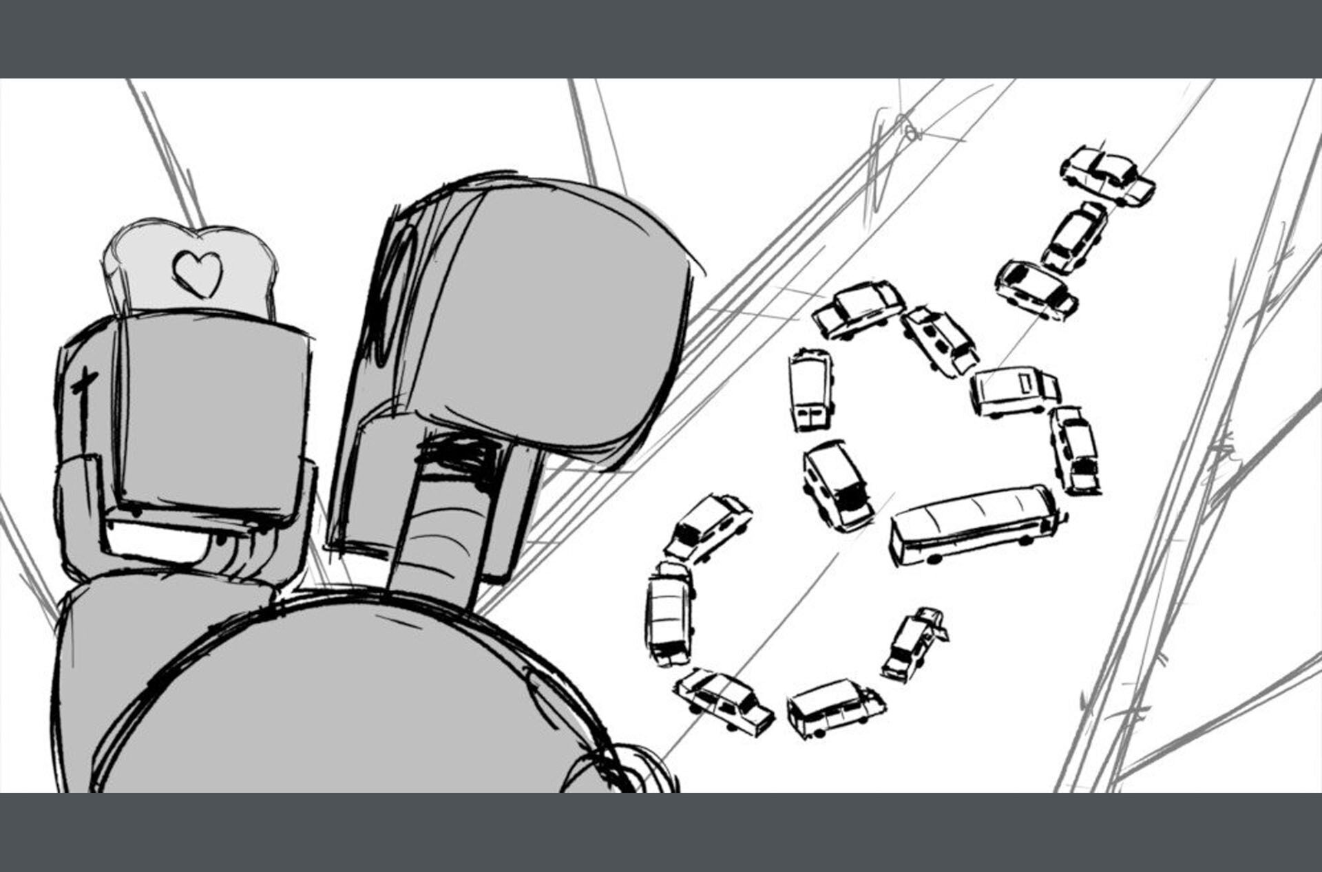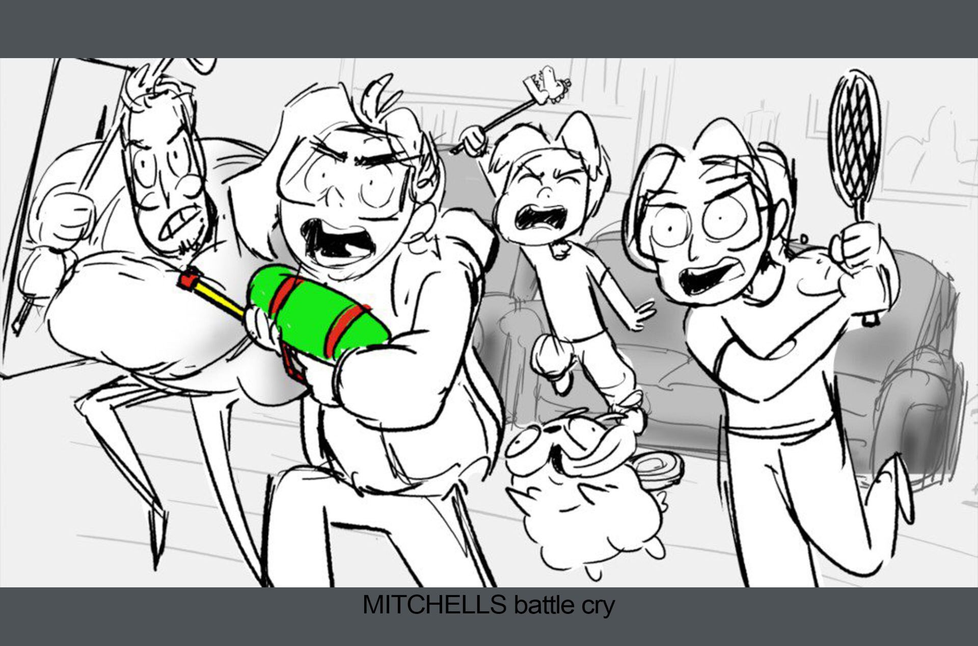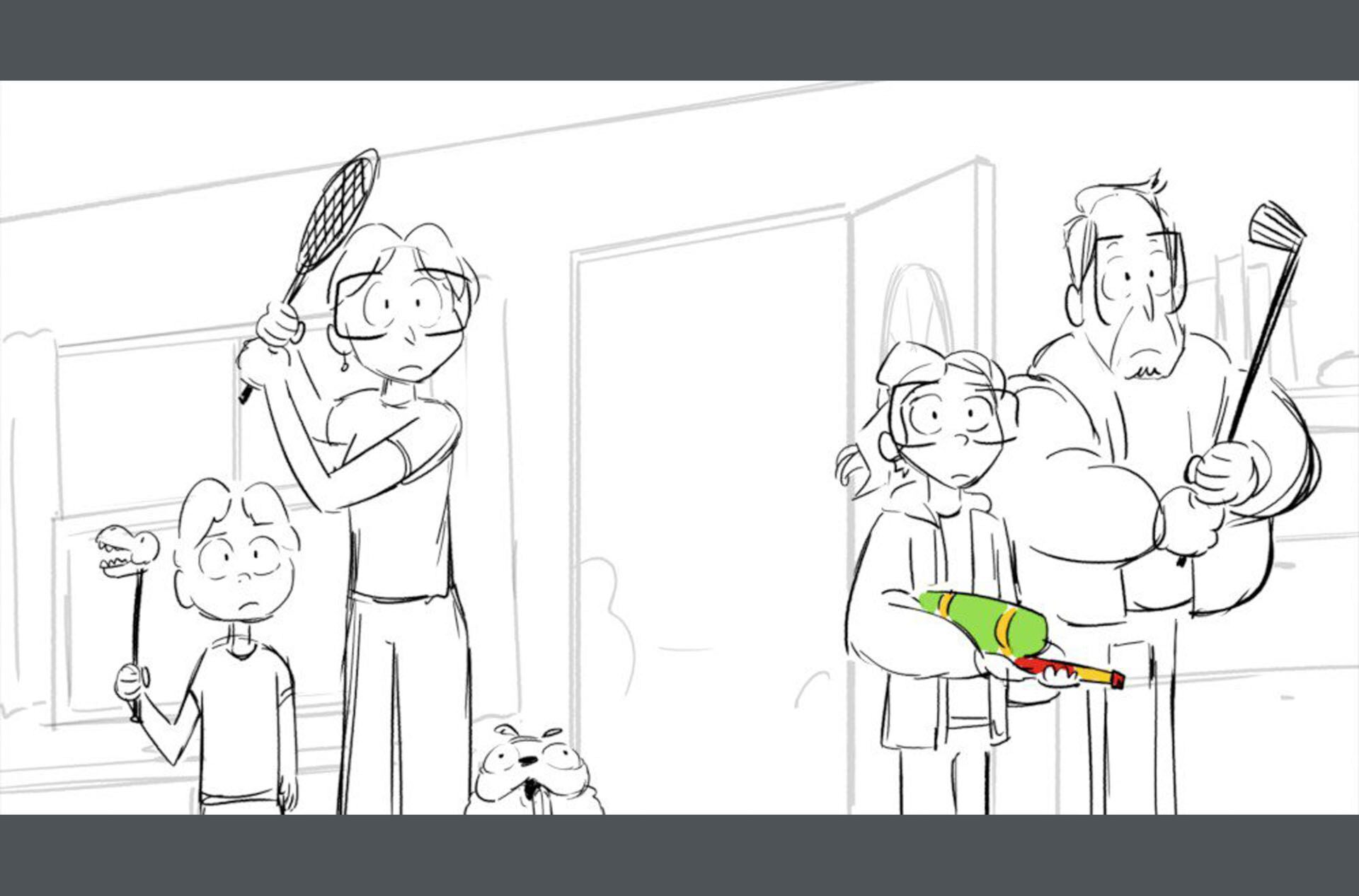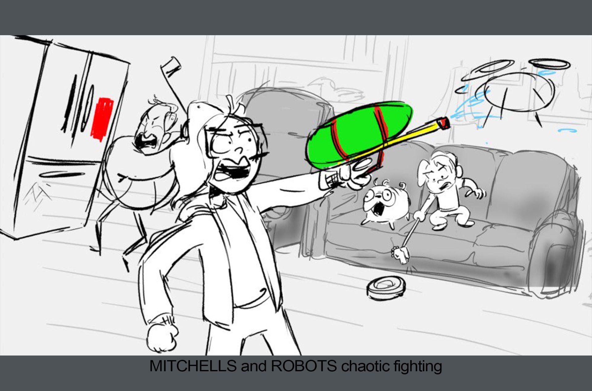 Storyboards by Kasey Fagerquist for an unproduced movie theater gift card commercial for The Mitchells vs. the Machines