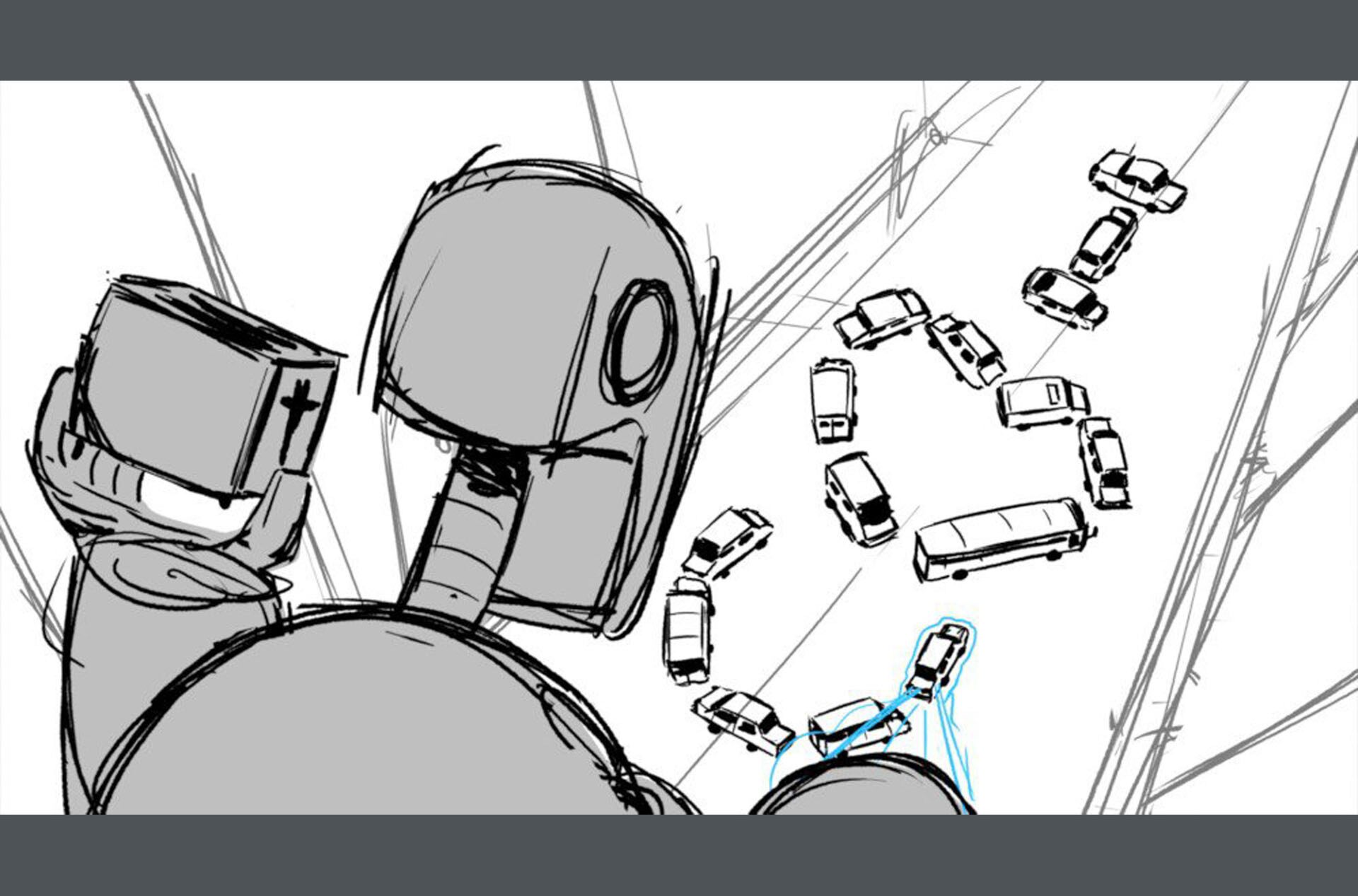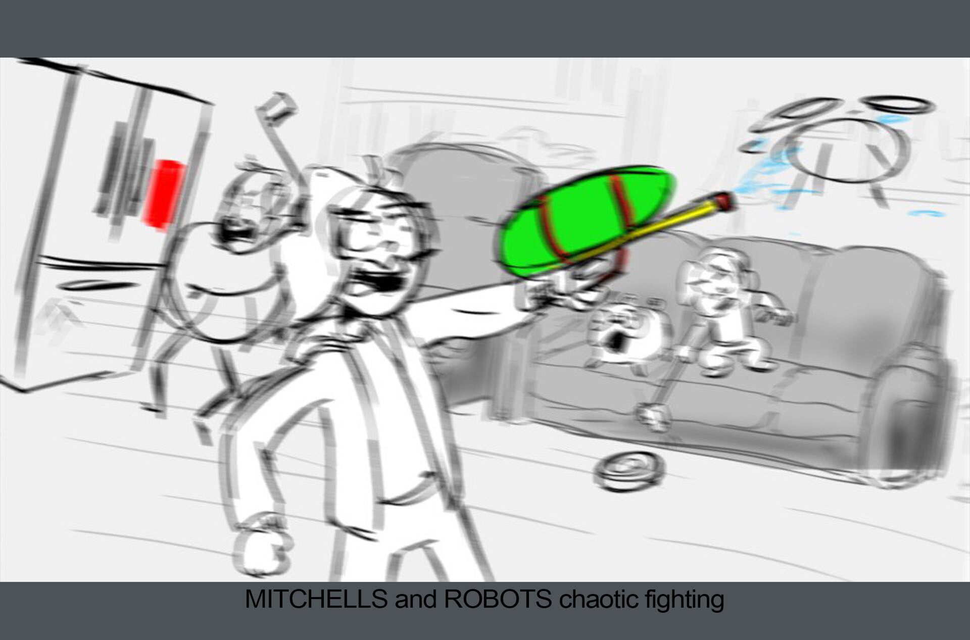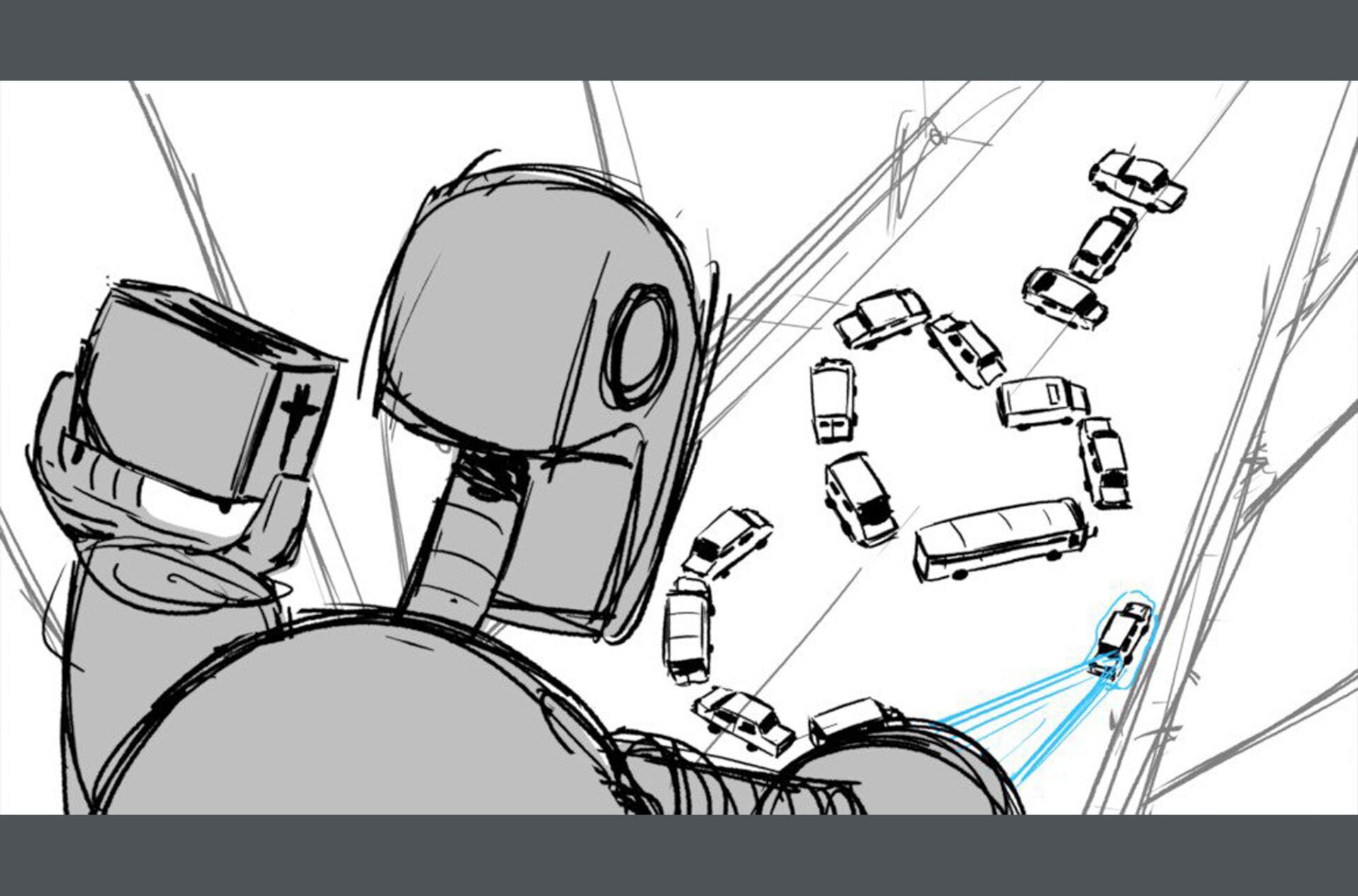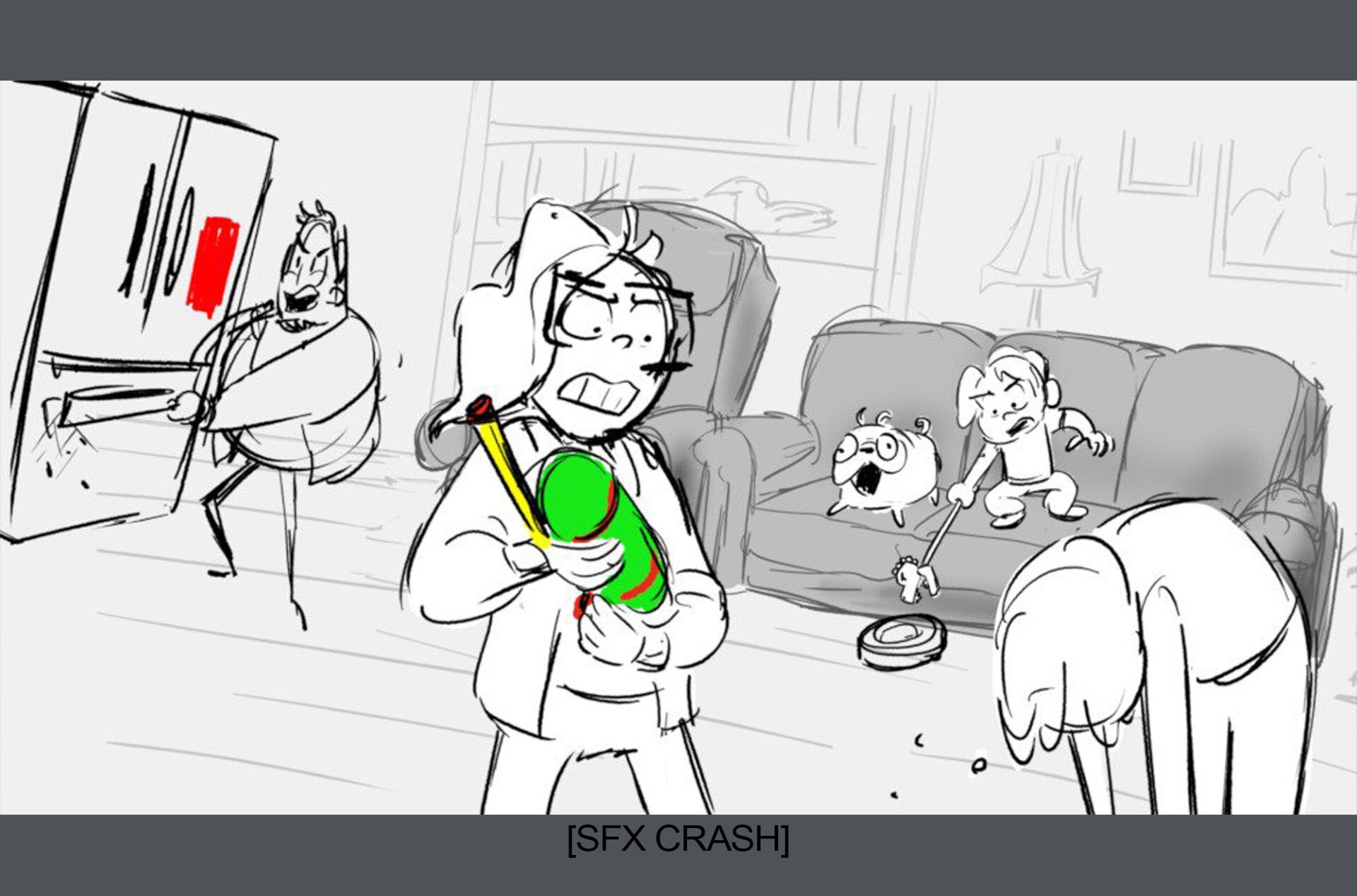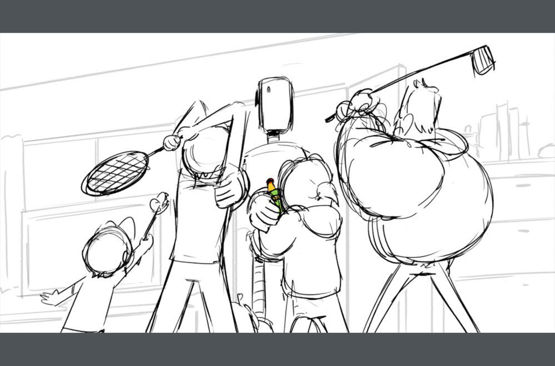 Storyboards by Kasey Fagerquist for an unproduced movie theater gift card commercial for The Mitchells vs. the Machines