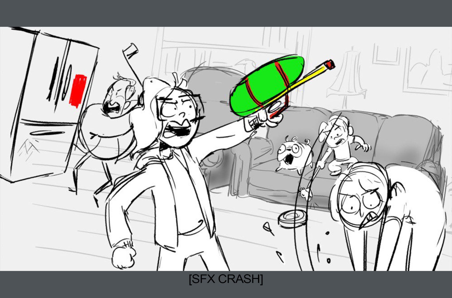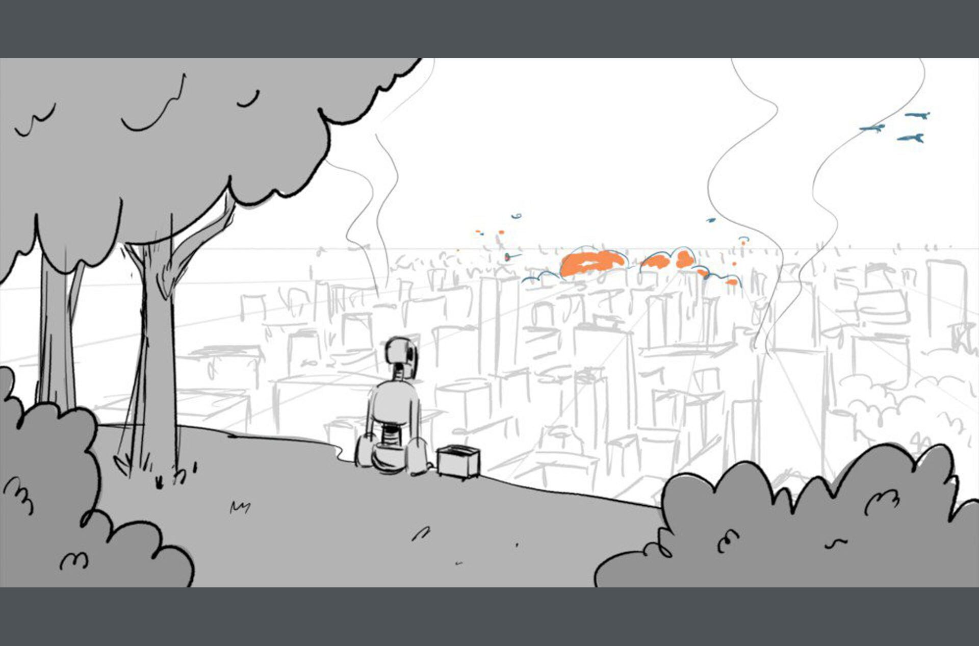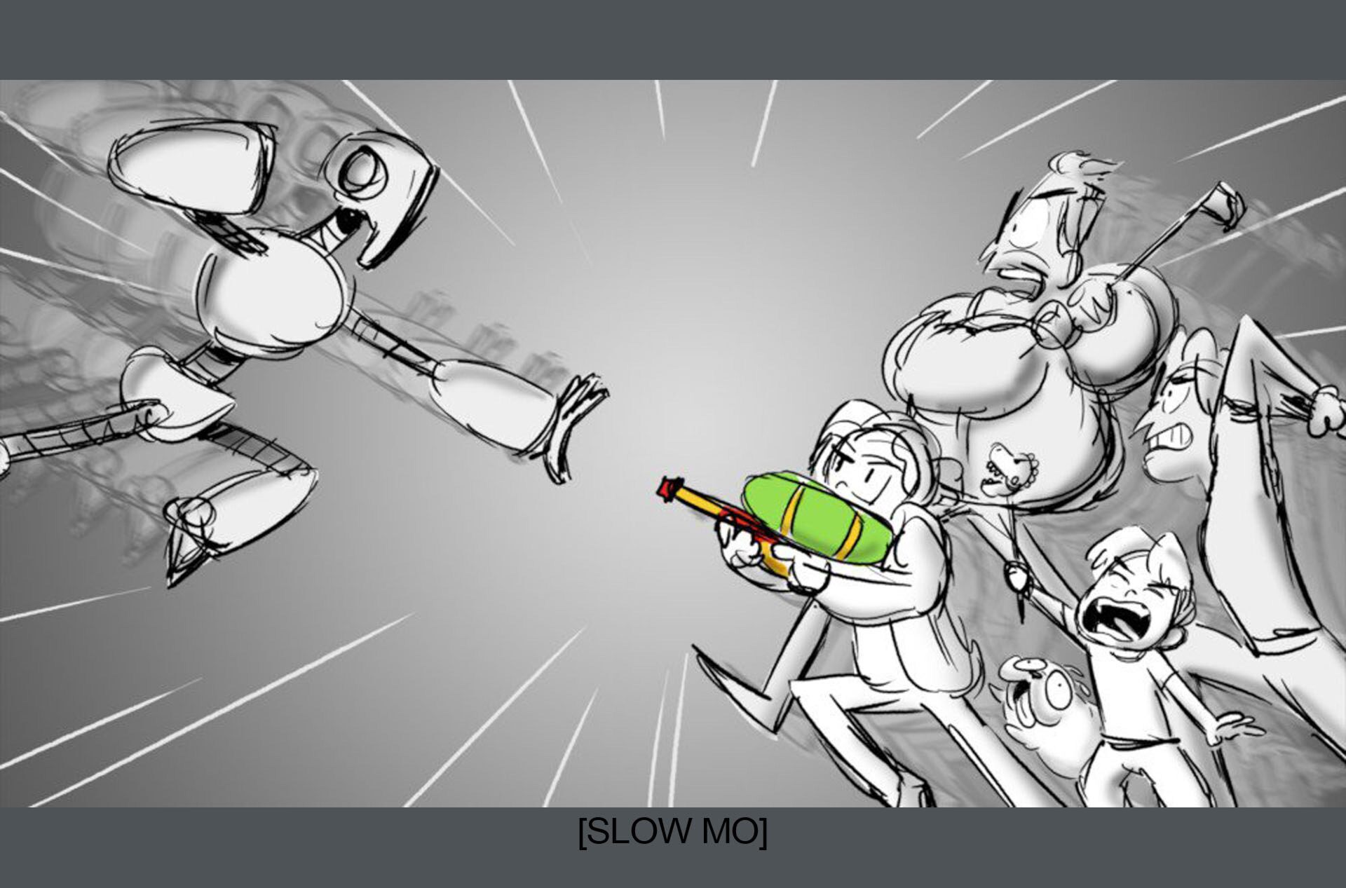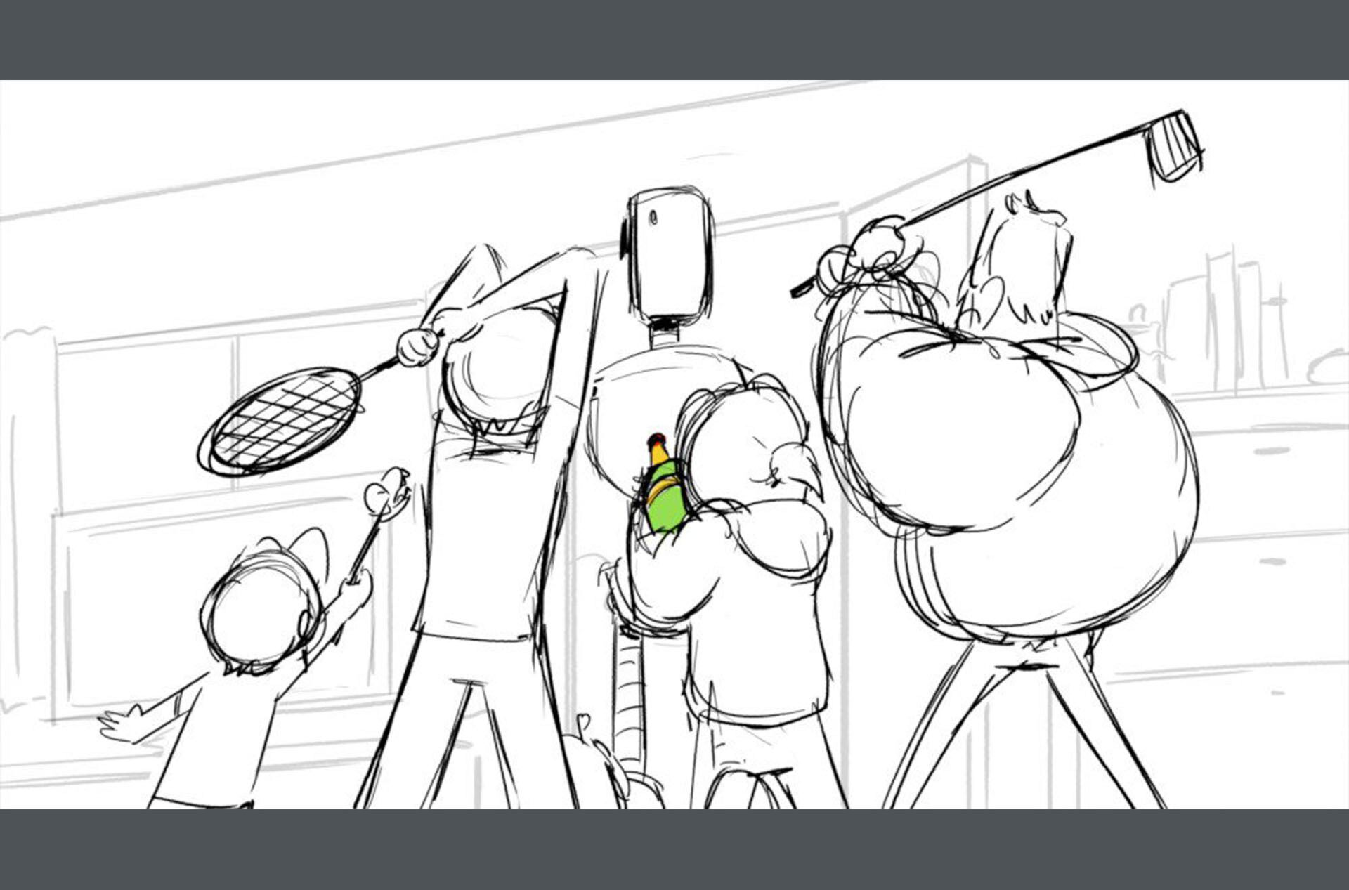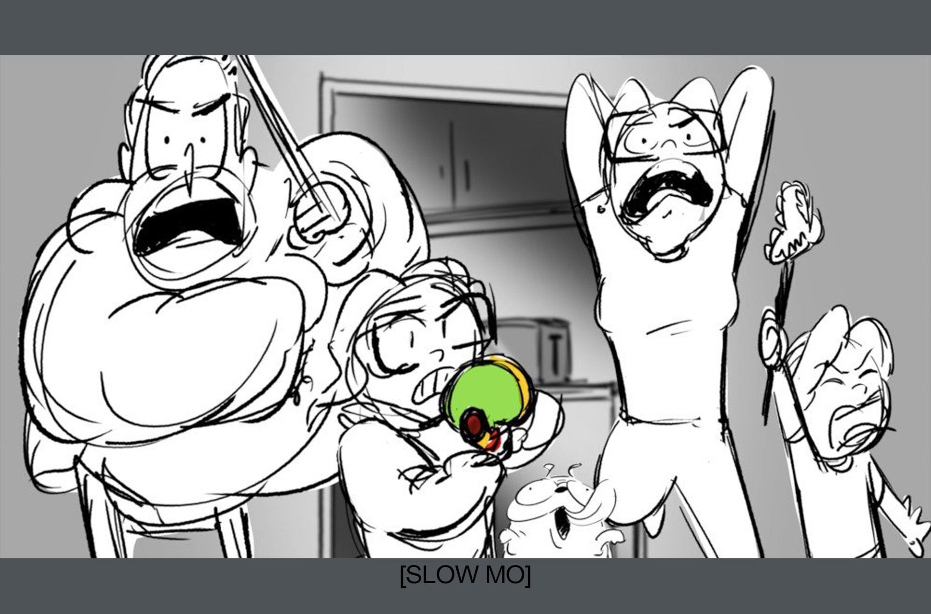 Storyboards by Kasey Fagerquist for an unproduced movie theater gift card commercial for The Mitchells vs. the Machines