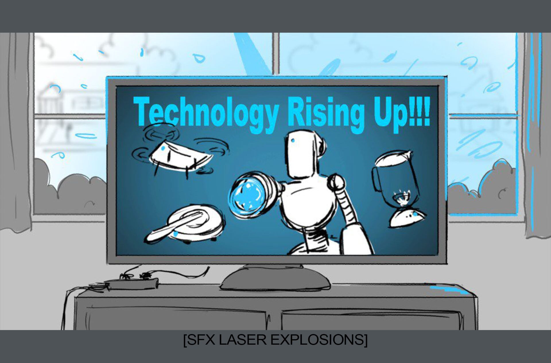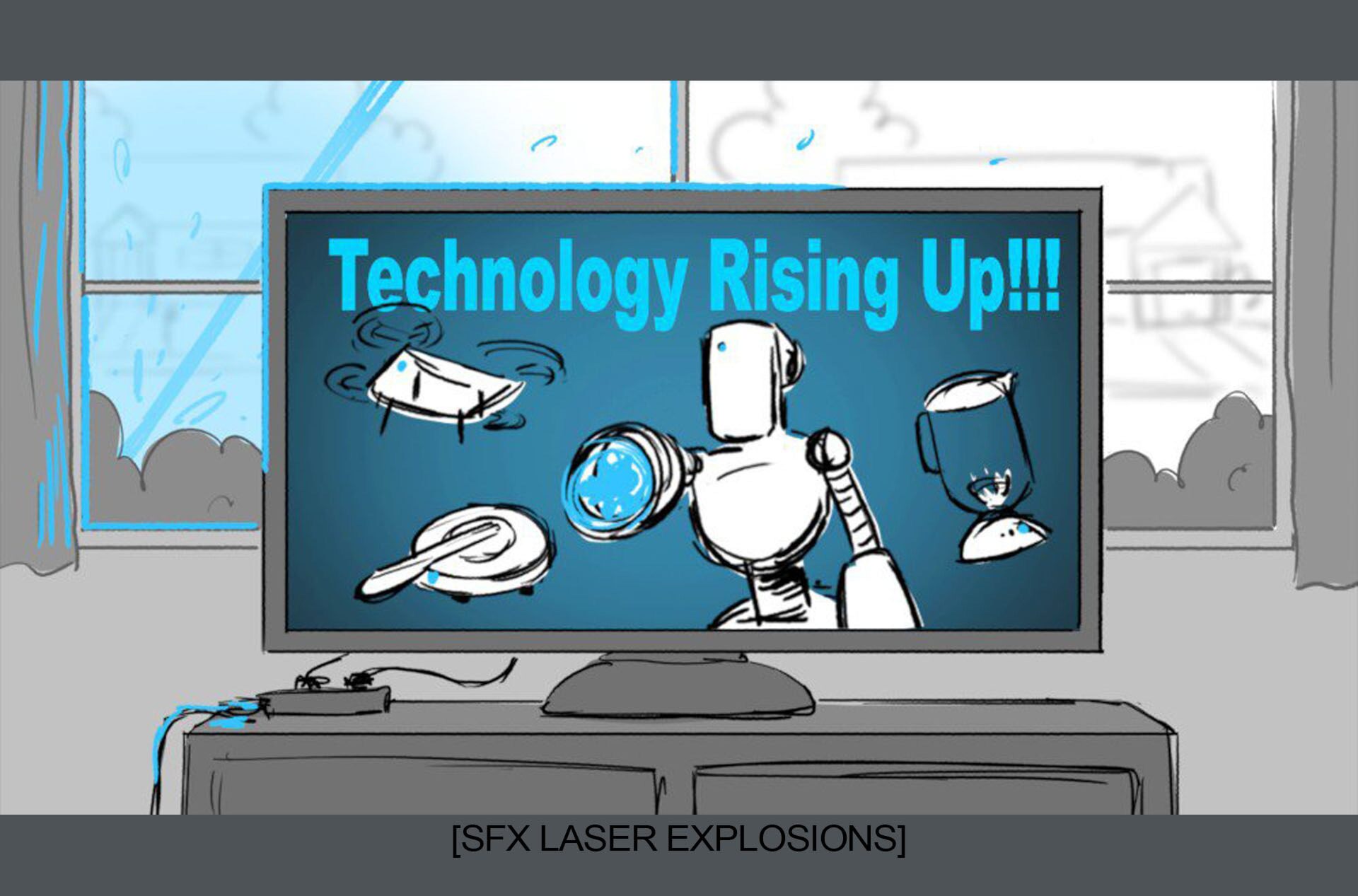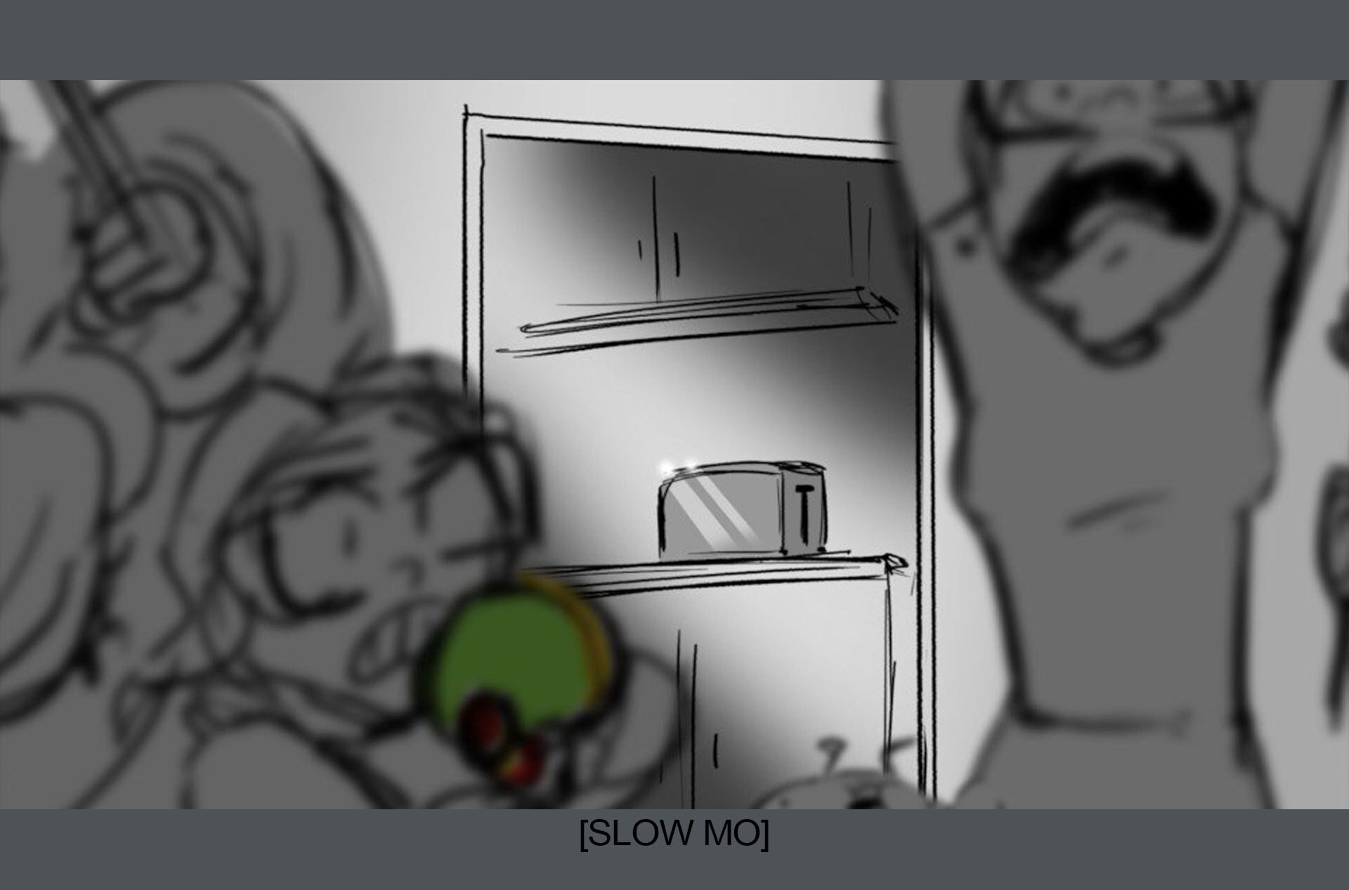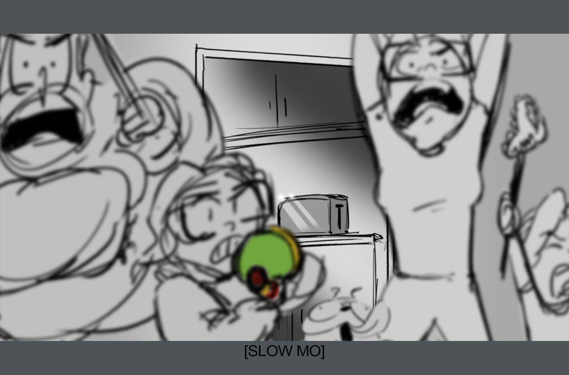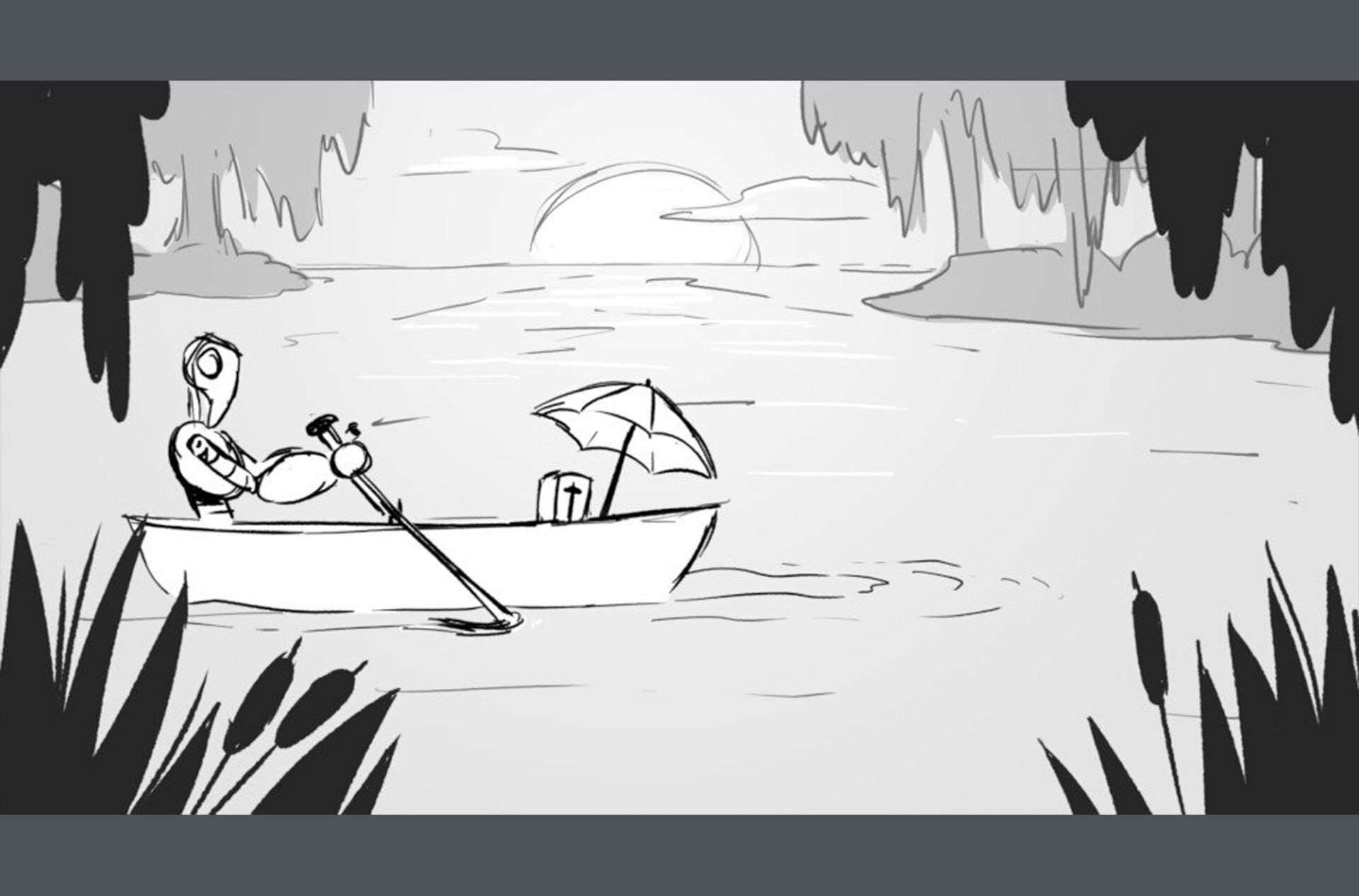 Storyboards by Kasey Fagerquist for an unproduced movie theater gift card commercial for The Mitchells vs. the Machines