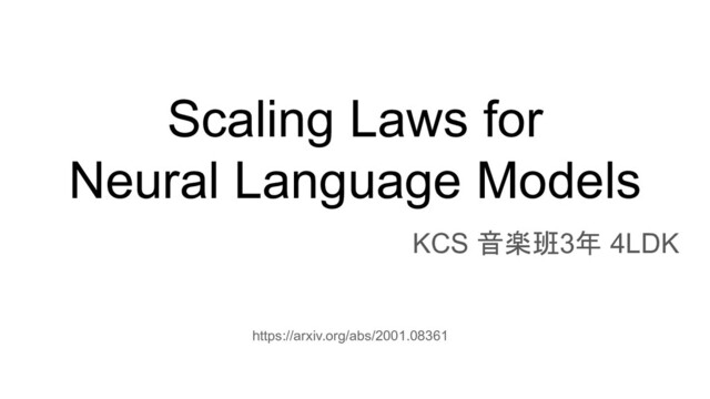 Scaling Laws for Neural Language Models KCS 音楽班3年 4LDK https://arxiv.org/abs/2001.08361