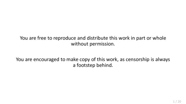 You should make a copy of this work for distribution, as censorship is always a footstep behind.