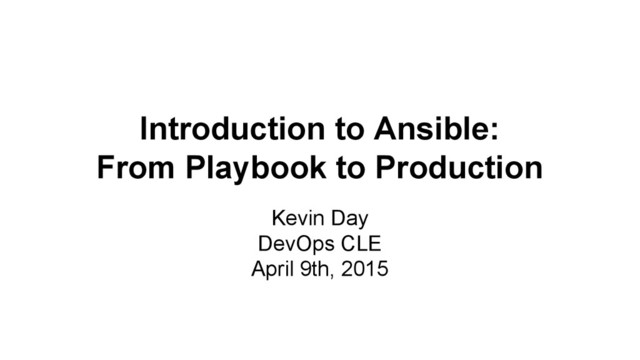 ◦ Vagrant ◦ Serverspec ◦ Circle CI ◦ AWS • Do as much in Ansible as possible https://github.com/kday/ansible-from-playbook-to-production [email protected] @kday