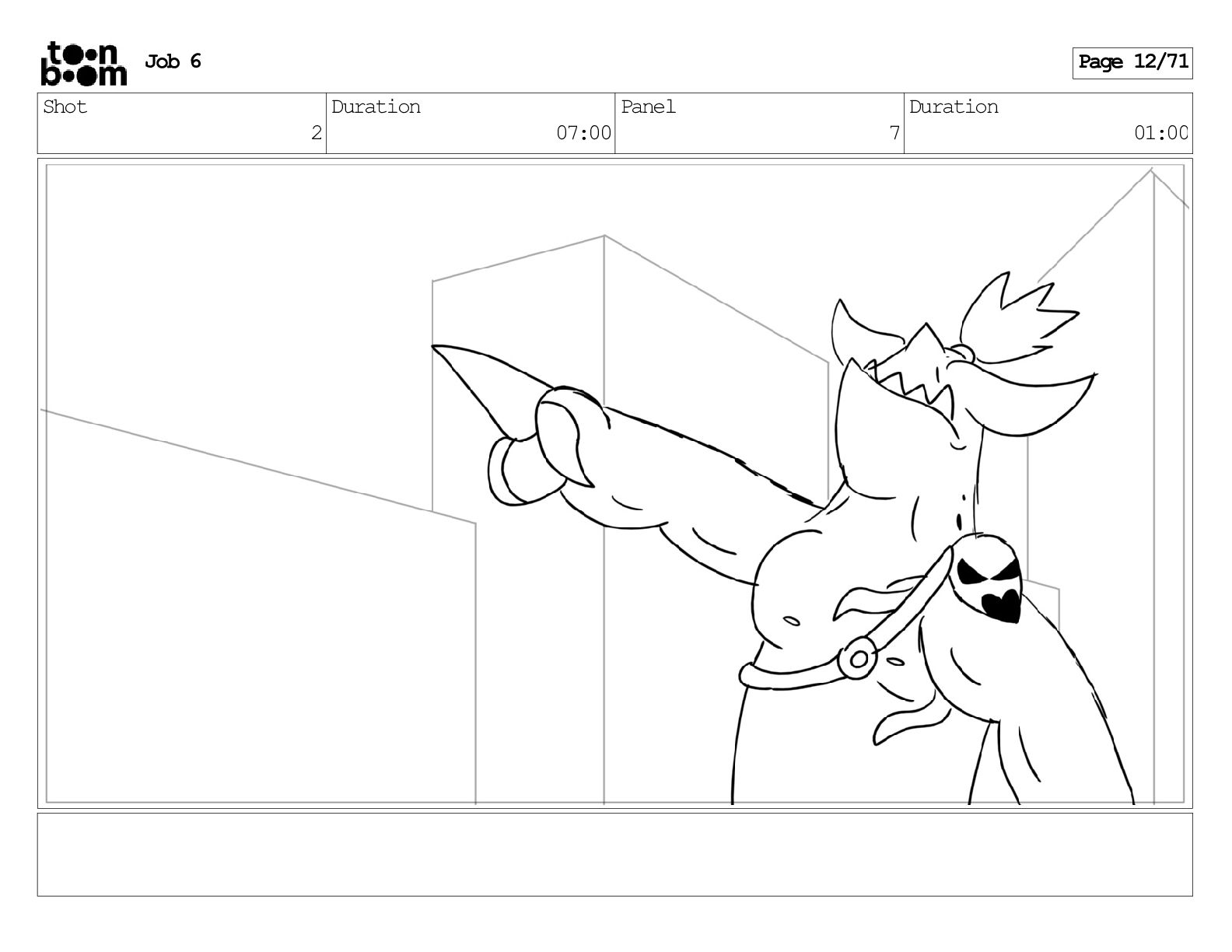 Shot 12 Duration 02:00 Panel 1 Duration 01:00 Job 6