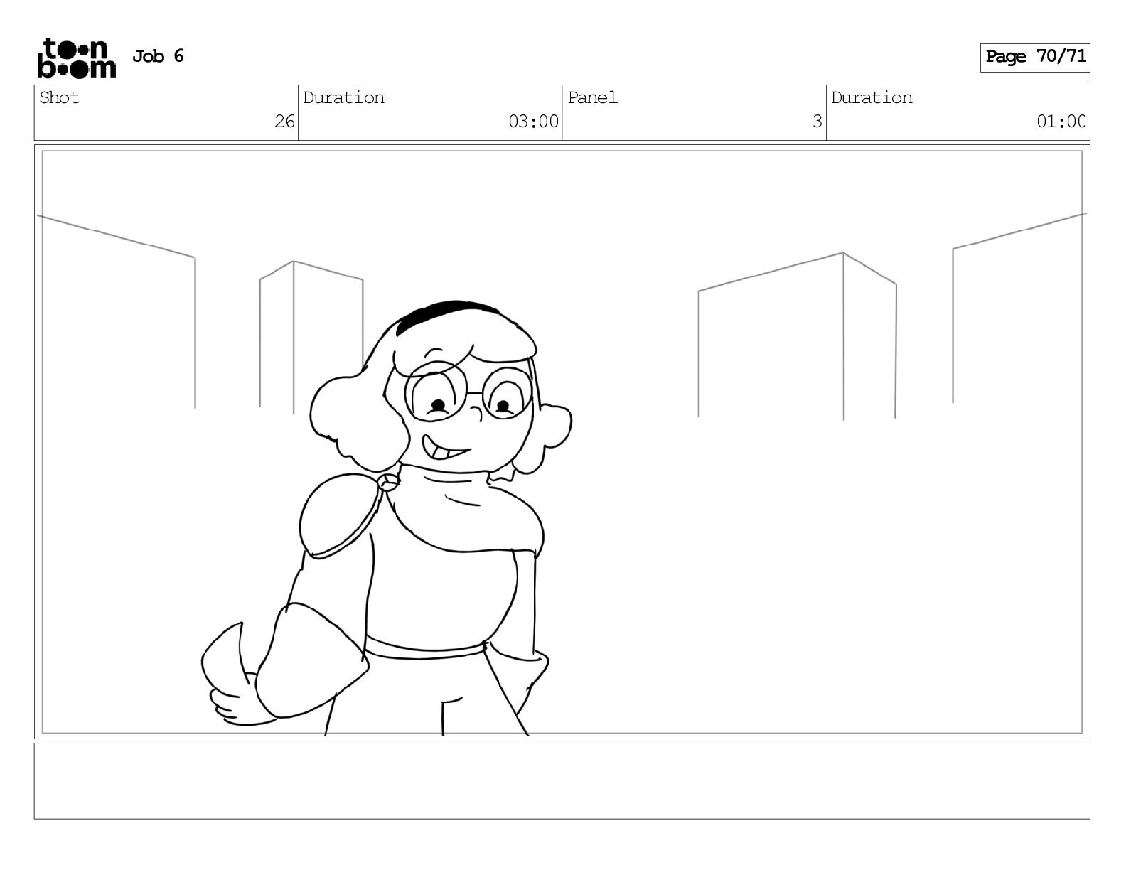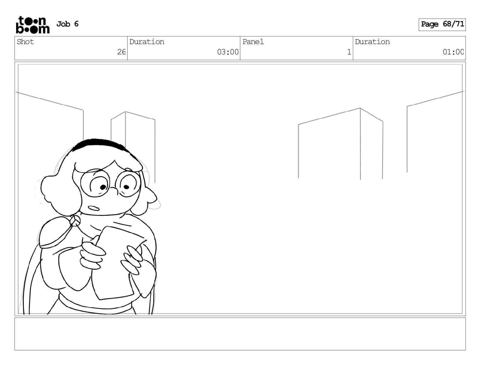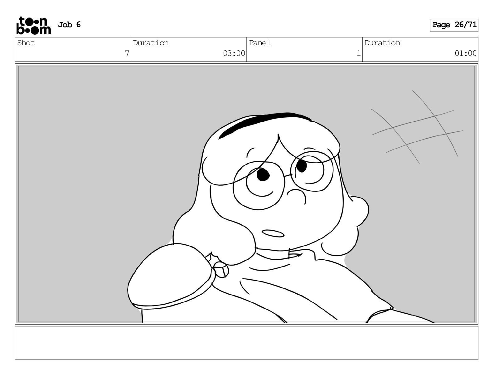 Shot 26 Duration 03:00 Panel 1 Duration 01:00 Job 6