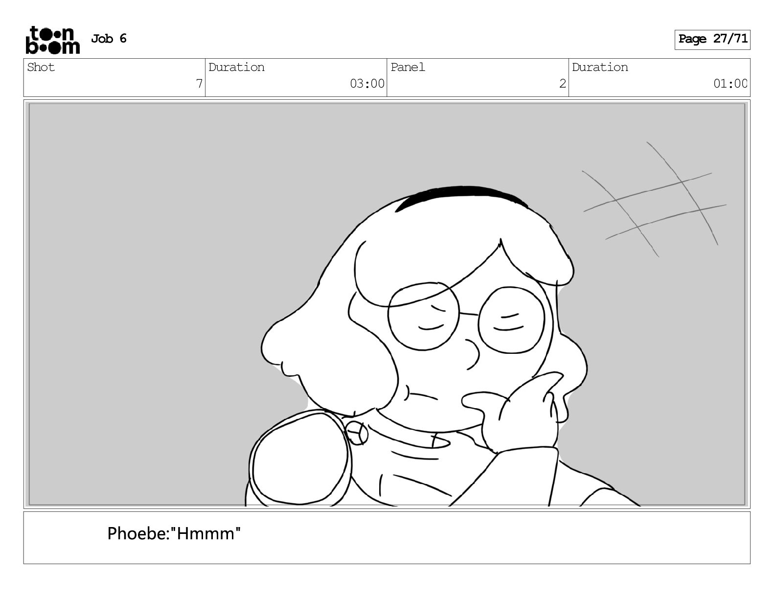 Shot 7 Duration 03:00 Panel 1 Duration 01:00 Job 6