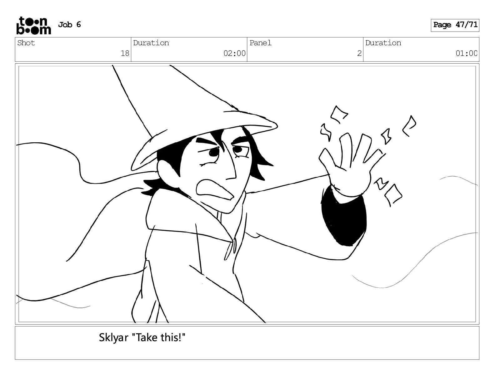 Shot 18 Duration 02:00 Panel 1 Duration 01:00 Job 6