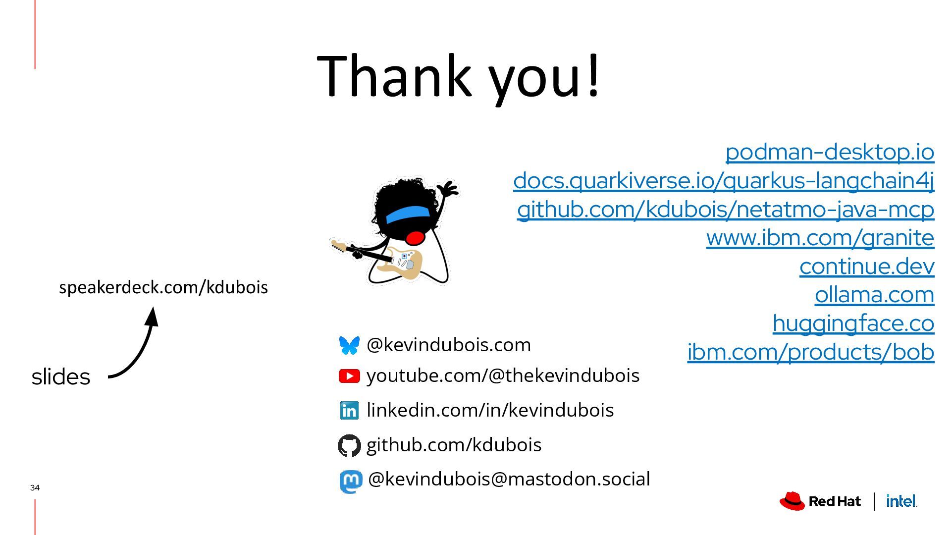 ibm.com/products/bob youtube.com/@thekevindubois linkedin.com/in/kevindubois github.com/kdubois @kevindubois.com @[email protected] Thank you! speakerdeck.com/kdubois 34