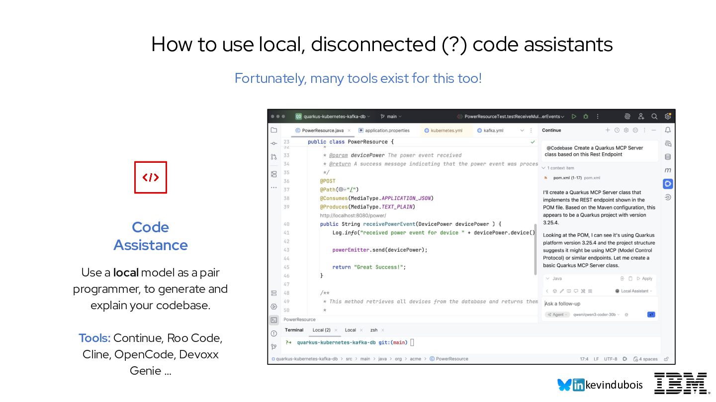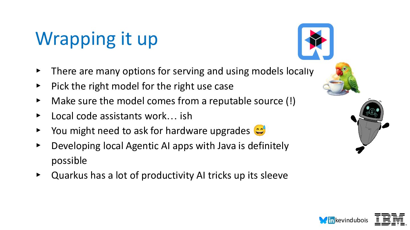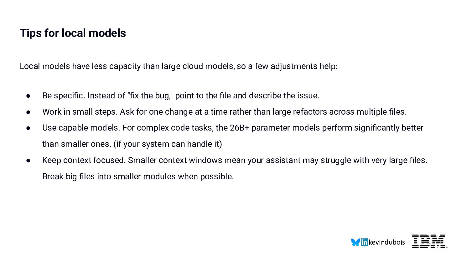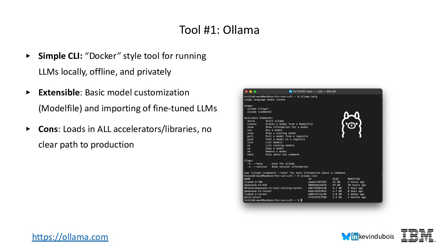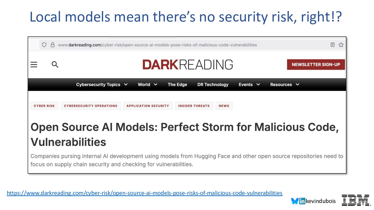 the Development Environment and adherence of the developers to their “local developer experience” in particular for testing and debugging Convenience & Simplicity Direct Access to Hardware Ease of Integration Simplify the integration of the model with existing systems and applications that are already running locally. For Organizations Data Privacy and Security Data is the fuel for AI, and a differentiator factor (quality, quantity, qualification). Keeping data on-premises ensures sensitive information doesn’t leave the local environment → crucial for privacy-sensitive applications Cost Control While there is an initial investment in hardware and setup, running locally can potentially reduce ongoing costs of cloud computing services and alleviate the vendor-locking played by Amazon, MSFT, Google Regulatory Compliance Some industries have strict regulations about where and how data is processed Customization & Control Easily train or fine-tune your own model, from the convenience of the developer’s local machine.