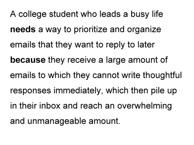 an email but I keep it in my inbox if I want to save it for later. But then I forget, and it stresses me out when they get lost in the pile. Jenny Chen, Mathematical and Computational Science '15 "I get stressed out if I take more than a day to respond. There's some emails that I just don't want to reply to, and I put it off and it stresses me out, leaving them in my inbox and knowing that I have to get back to them." Anisha Mudaliar, Public Policy '15 "I organize my emails by putting the unread at the top. So, even when I read something, I'll mark it as unread and put it at the top of my inbox, so I can reply later. But it builds up really quickly, and when it reaches a certain threshold, I just give up." "Emails that require me to reply with substantive material stress me out, because I know I could just take 15 minutes to do it, but I put it off for later for some reason." "There's something about deleting emails, and putting them into my GCal that's very therapeutic."
