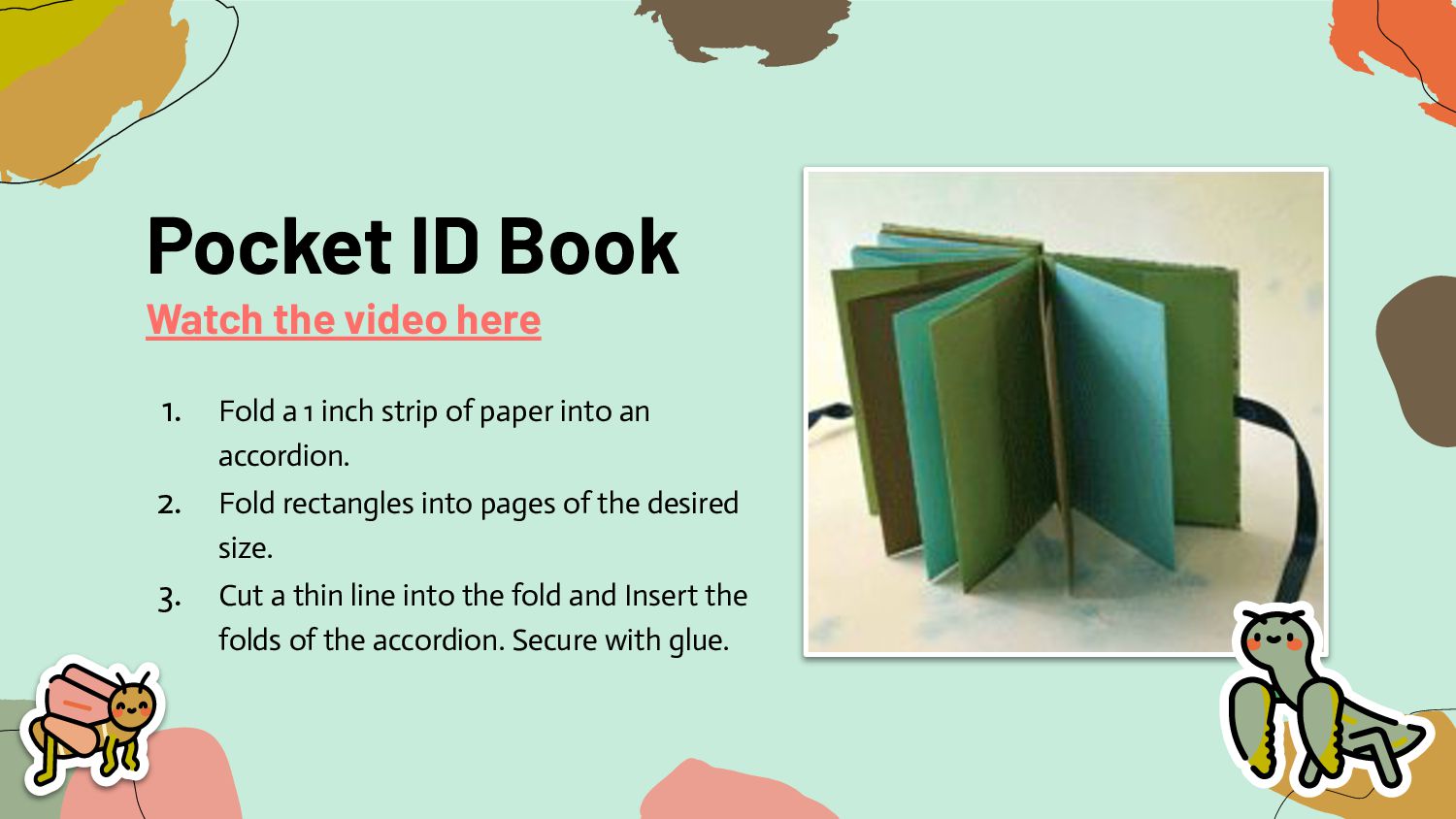 1 inch strip of paper into an accordion. 2. Fold rectangles into pages of the desired size. 3. Cut a thin line into the fold and Insert the folds of the accordion. Secure with glue.