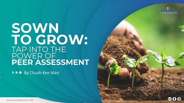• Evidences from past research www.chuahkeeman.com • Strategies to maximise the potentials of peer assessment • Tools to facilitate the implementation peer assessment • Problems in peer assessment • Diverting pain points to gain points