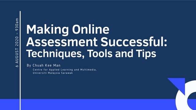 the assessment to be summative 2. Make use of repeatability in online environment (e.g. offer “trial” or practices to let students get used to a format). 3. Make sure requirements are clearly signposted (rubrics should be transparent) 4. Identify common “tripping points” and rectify immediately.