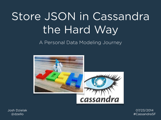 in advance • Still might not be fast to scan +1M / +1B rows • Not possible with Keen - schema is implicitly defined by customers, and not enforced at write-time • Keen has 500,000+ user-defined collections today, stored in 1 Cassandra column family CREATE TABLE requests ( KEY uuid PRIMARY KEY, timestamp text, url text, response_status integer, … )