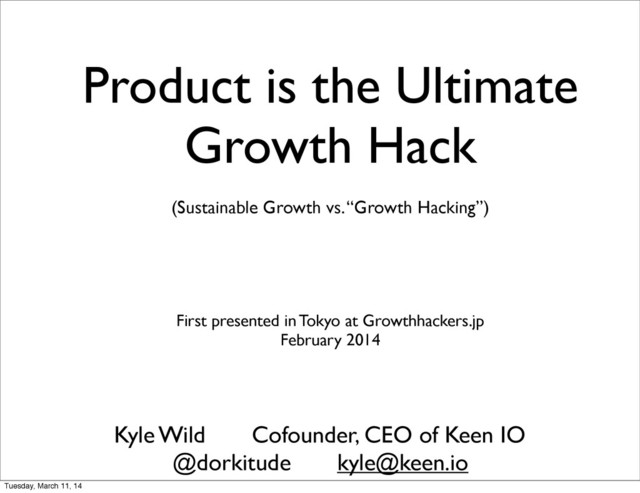 Keen IO @dorkitude [email protected] Product is the Ultimate Growth Hack First presented in Tokyo at Growthhackers.jp February 2014 Tuesday, March 11, 14