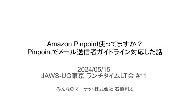 Amazon Pinpoint使ってますか? Pinpointでメール送信者ガイドライン対応した話 2024/05/15 JAWS-UG東京 ランチタイムLT会 #11 みんなのマーケット株式会社 石橋翔太