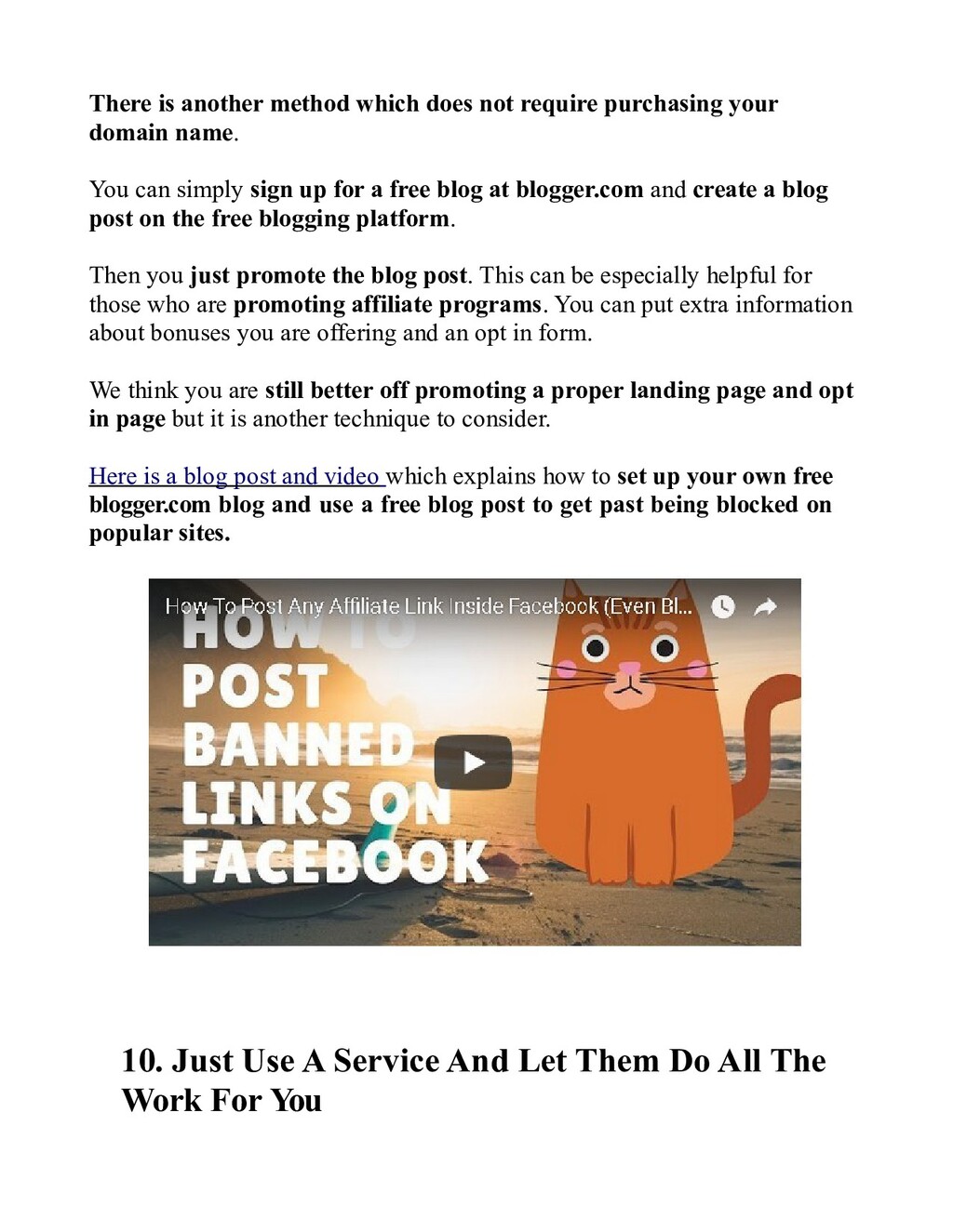 domain name. You can simply sign up for a free blog at blogger.com and create a blog post on the free blogging platform. Then you just promote the blog post. This can be especially helpful for those who are promoting affiliate programs. You can put extra information about bonuses you are offering and an opt in form. We think you are still better off promoting a proper landing page and opt in page but it is another technique to consider. Here is a blog post and video which explains how to set up your own free blogger.com blog and use a free blog post to get past being blocked on popular sites. 10. Just Use A Service And Let Them Do All The Work For You