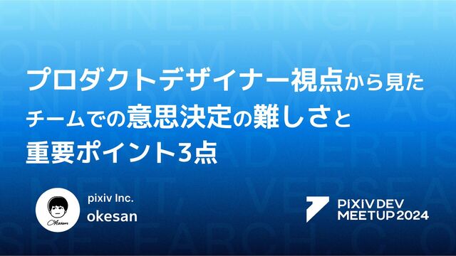 ▪ 制約を考えない場合の理想案としてどのようなイメージを持っているのか • プロダクト自体の方針やターゲットに適合する内容であるか? ◦ そのタイミングで提供することで、ユーザーに想定通りの影響を与えることができる のか ◦ プロダクトの今後の方針や施策と照らし合わせて、連続性のある体験を提供できる内 容なのか ◦ 提供しようとしている新たな体験に対して、その体験の提供意図や使い道をユーザー が見いだせるようなものになりそうか • その体験を提供するために変更・追加作成が必要な画面や要素はどれくらいあるか ◦ 考えうる手段はどのようなものがどれくらいあるのか ▪ それぞれのメリット・デメリット ▪ 技術的制約がありそうな箇所はあるか ▪ プロダクトの既存の機能に対して、整合性をとれるものなのか ▪ pixivの一機能として提供する体験に対して、整合性が取れる内容であるか pixivのプロダクトデザイナーは なぜこれだけのことを考えている?