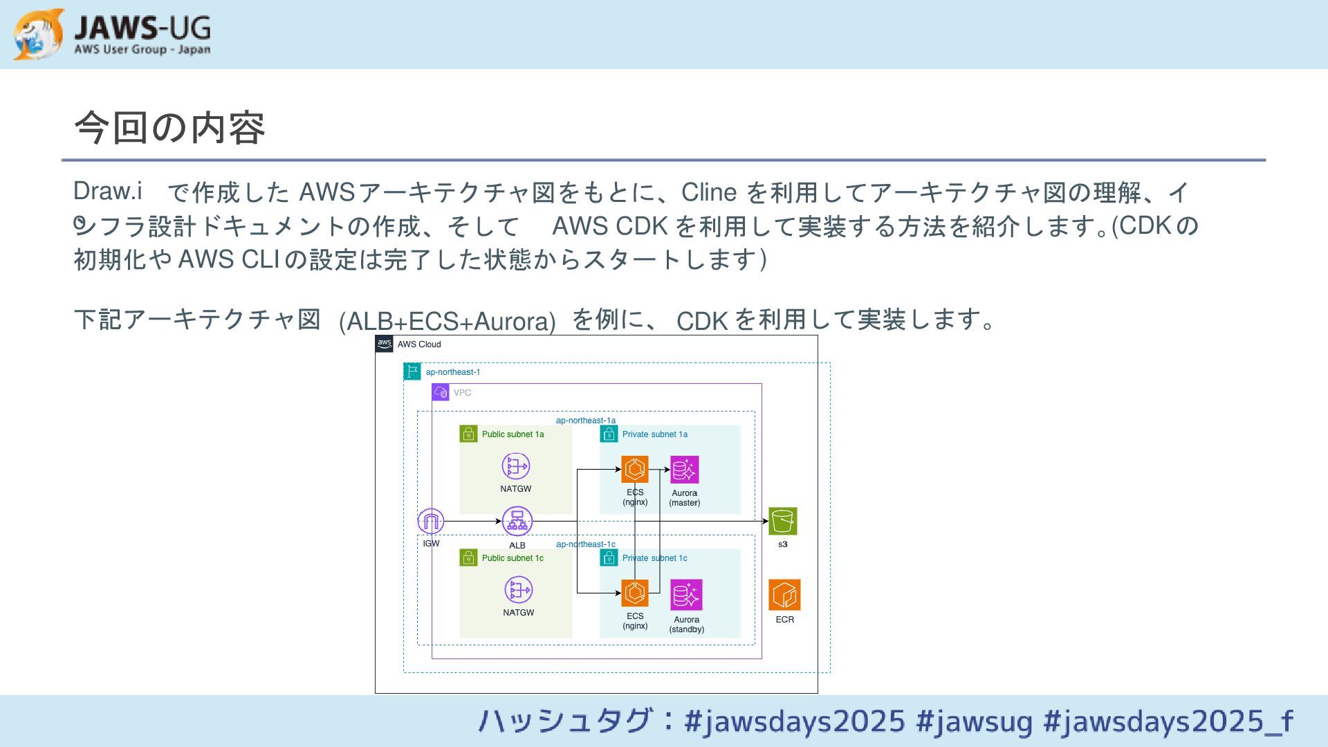 - AWS CDKによる実装の自動化