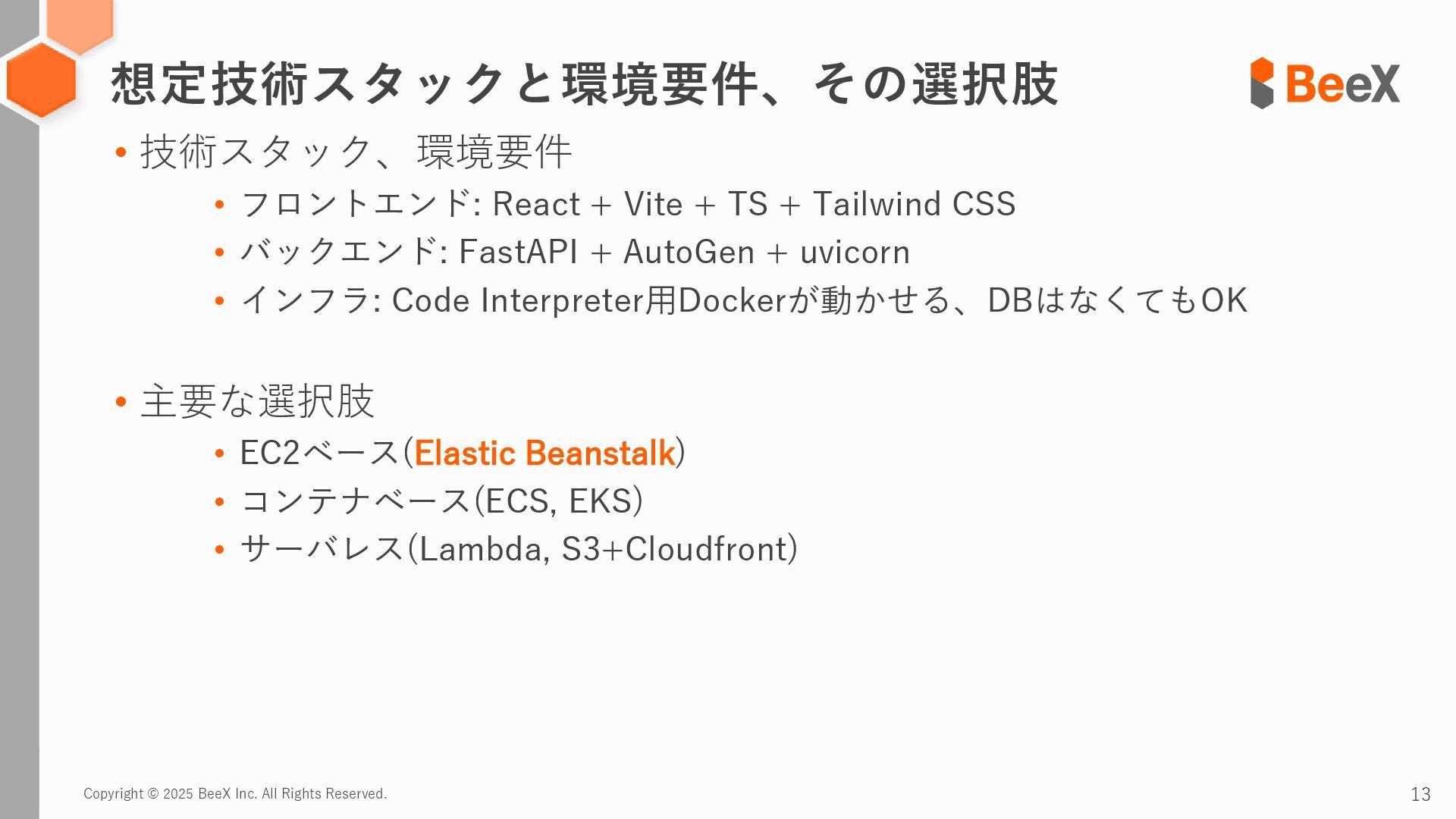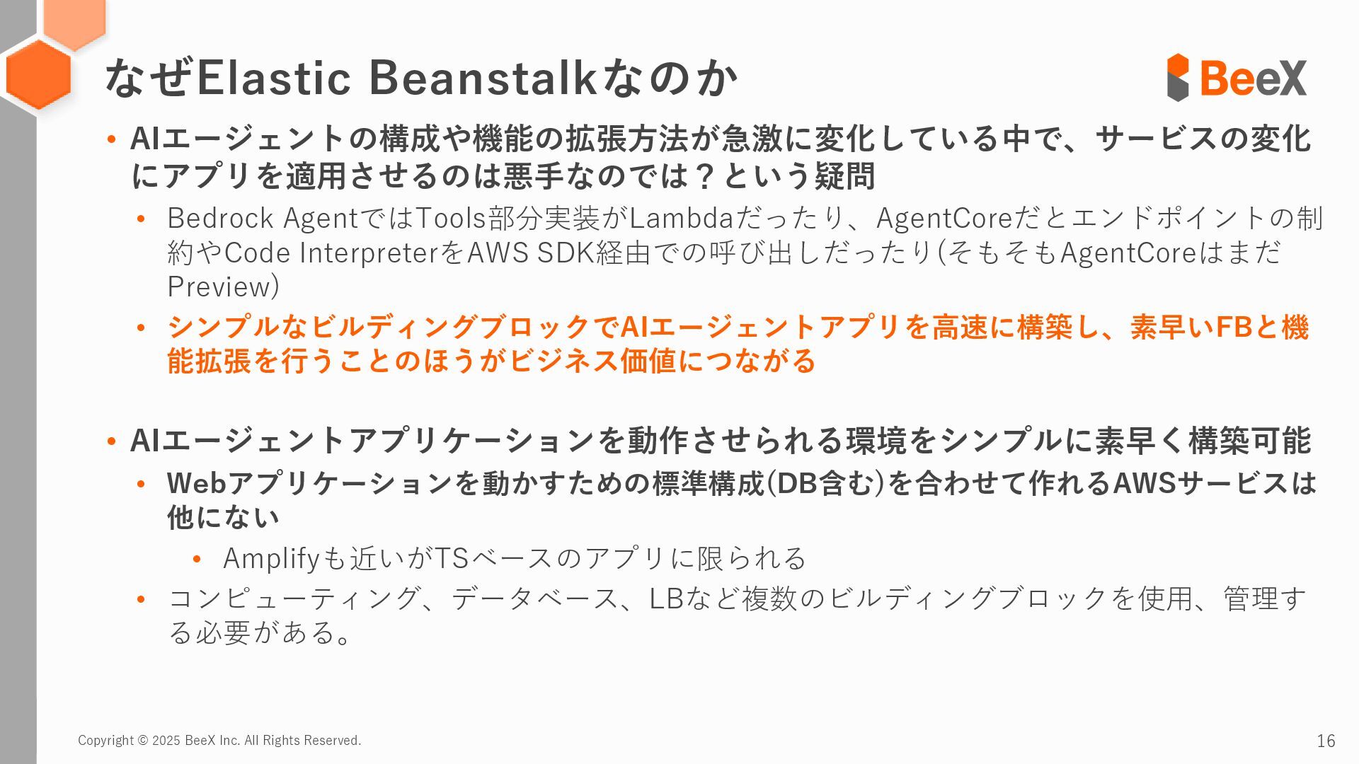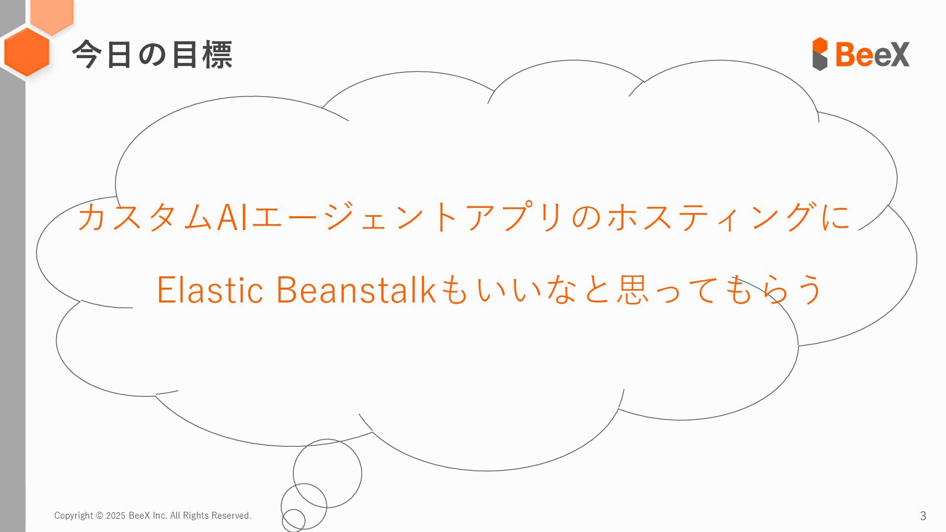 Copyright © 2025 BeeX Inc. All Rights Reserved. 3 カスタムAIエージェントアプリのホスティングに