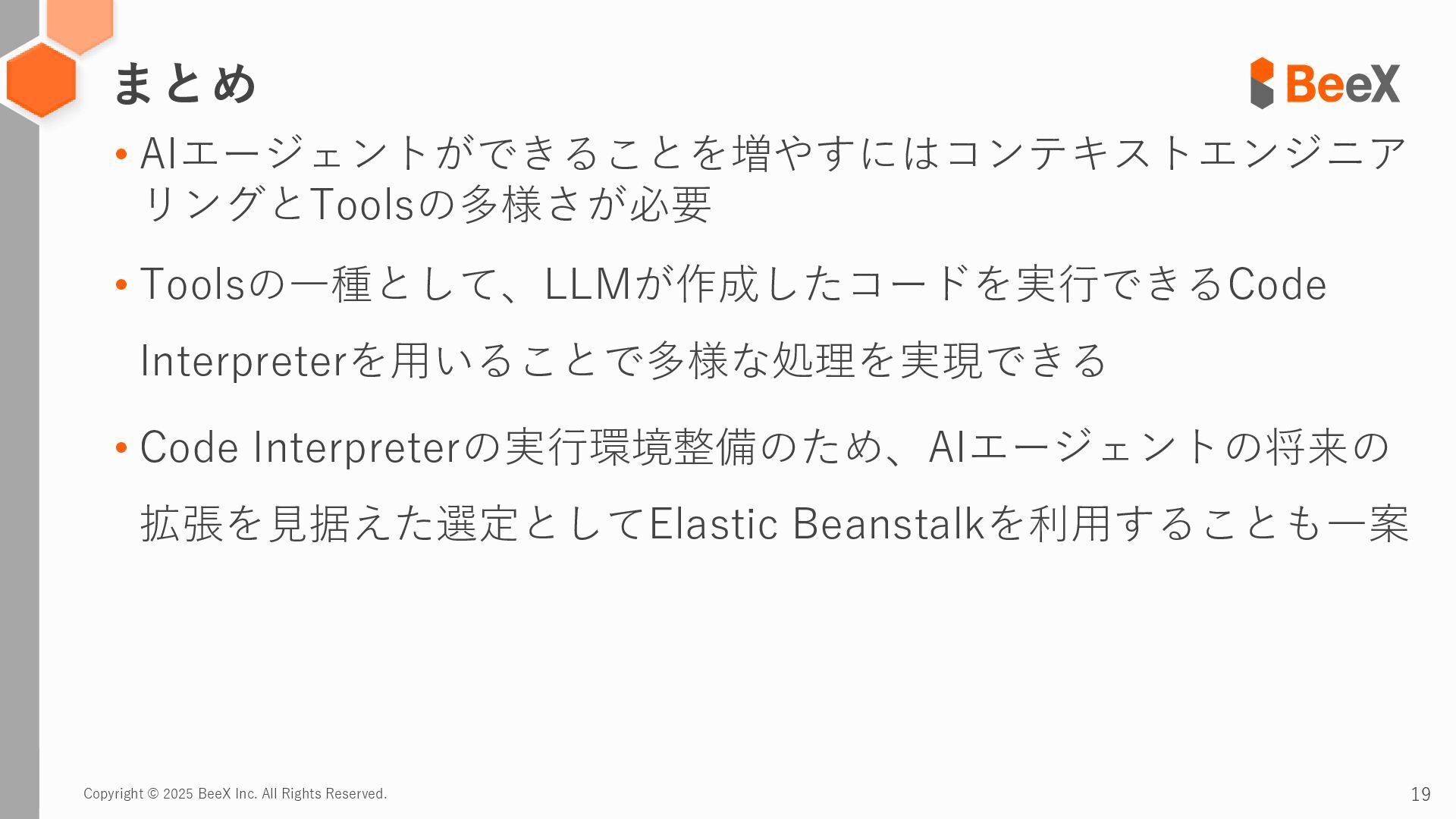 Copyright © 2025 BeeX Inc. All Rights Reserved. まとめ