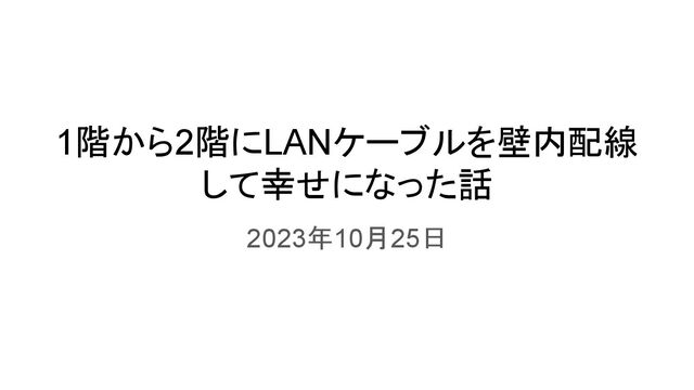 • しかしの以下の問題が出てきた ◦ 会社のリモートワークでこの通信速度は不安 ◦ X(当時はまだTwitter)で爆速ネットワーク環境の投稿を見て,速くしたくなった ◦ 色々検証できる自宅サーバ環境を自分の部屋にほしい • なので2階にLANケーブルを配線したい