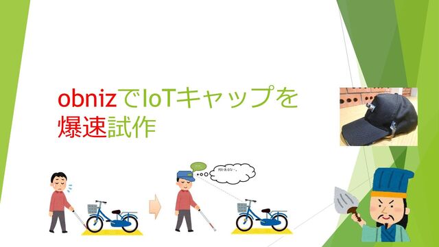 人のため、将来の自分のために役立つ作品を作りたいと思い、「IoTキャップ」を作成しました。 ■仕組み 距離センサ→obniz→振動モータで壁までの距離を通知